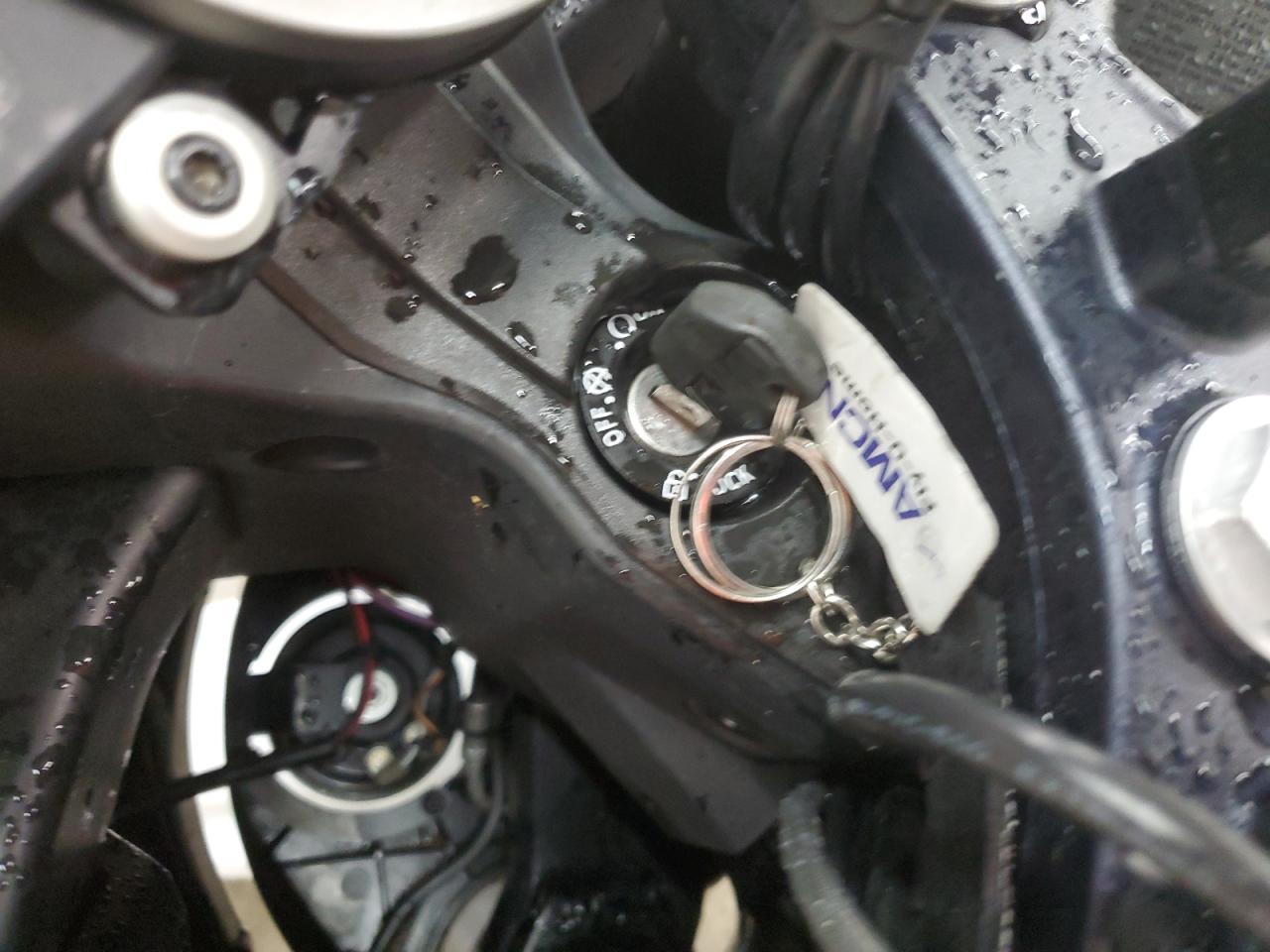 The motorcycle exhibits mechanical issues and rear-end damage. Wheels, lights, and glasses have visible signs of damage. The interior has also some damage.