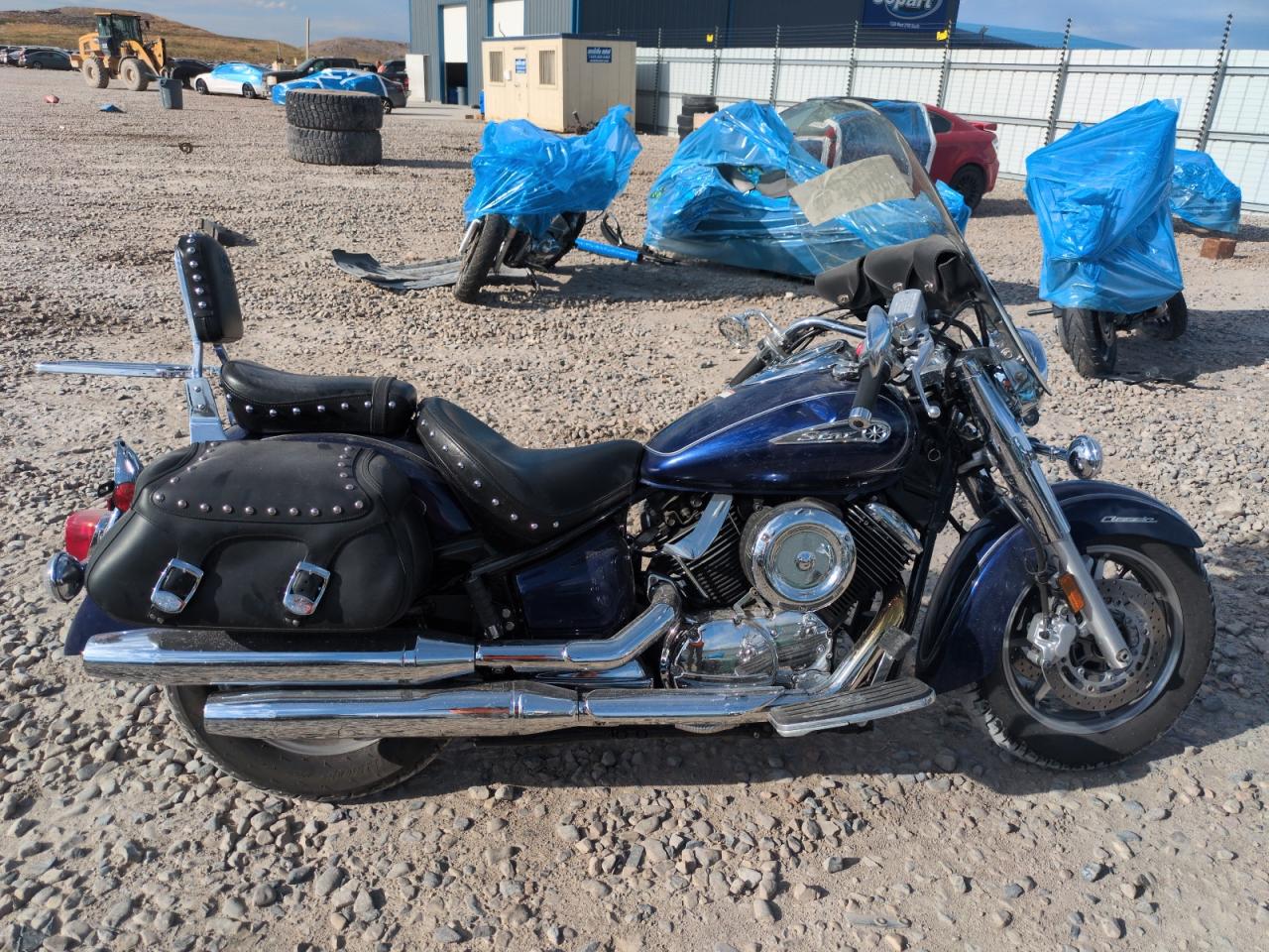 GoodThe 2009 YAMAHA XVS1100 A is a blue motorcycle. It has front end damage, classified as body damage. The vehicle starts and runs. The motorcycle appears to have some cosmetic and body damage, but is still drivable. The interior condition is rated as good, with no specific damage details. The overall state is considered good, indicating moderate wear and tear consistent with its age and mileage. The vehicle has a windshield that is ok. The lights appear to be intact.