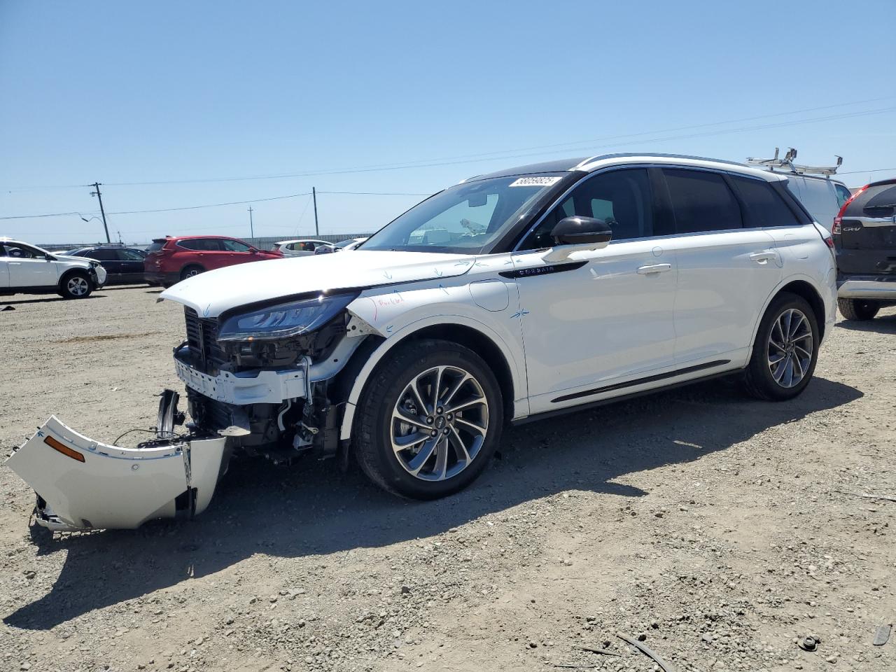 FairThe white 2022 LINCOLN CORSAIR GR has sustained significant front-end damage, categorizing it as Body damage. The car is Run & Drive Verified. Interior appears to be in good condition. The primary damage is to the front end, with no secondary damage reported. The lights, glasses and wheels appear to be intact, but the front end requires significant repairs. Airbags were not deployed.