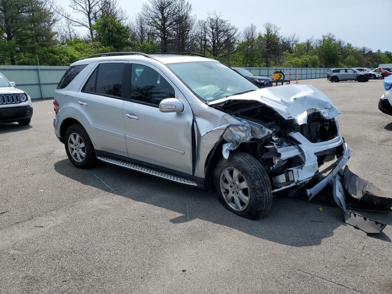 FairThe 2006 Mercedes-Benz ML 350, showcased in the images, presents significant damage from a collision, primarily affecting the front end and side. The car's silver exterior has sustained substantial impact damage, particularly on the front. The wheels appear intact, but the body panels, lights, and likely the front structure have been severely compromised. The airbags have deployed, and the interior shows signs of impact. The car's overall condition is poor. This SUV appears to be a candidate for extensive repairs.