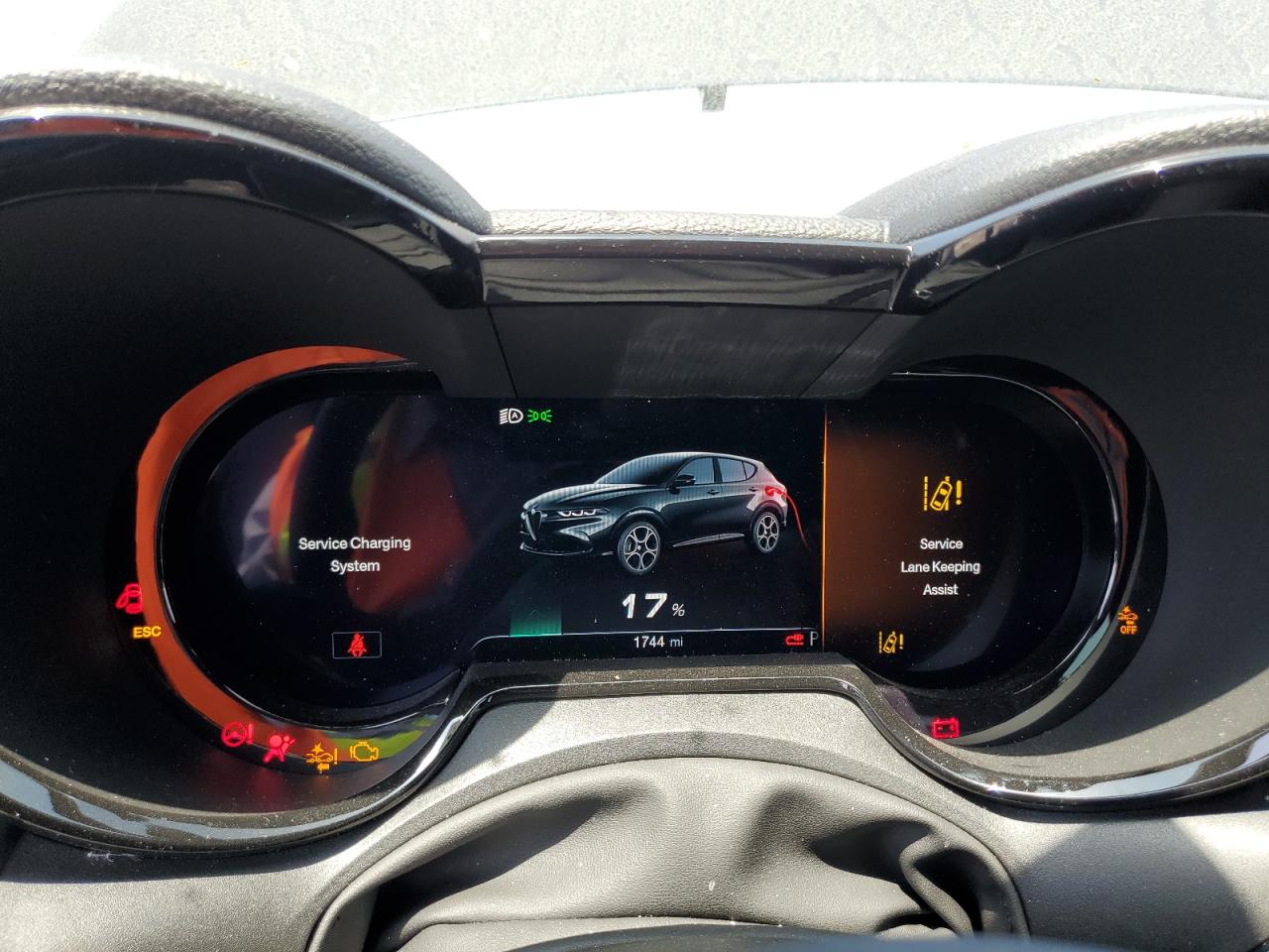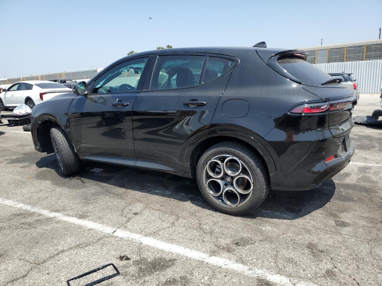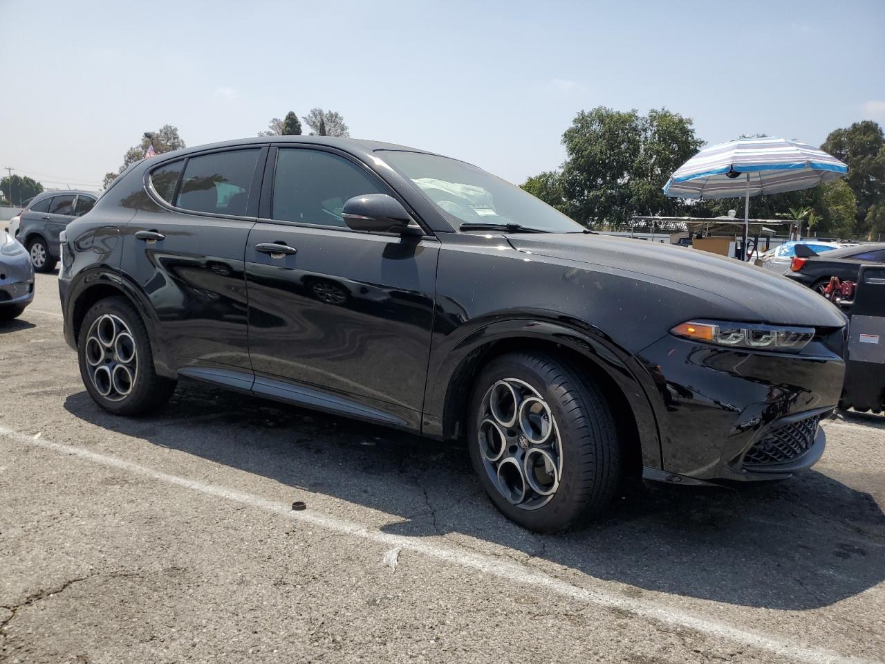 The ALFA ROMEO TONALE has significant damage to the front end and undercarriage. The interior shows airbag deployment with damage to the steering wheel and dashboard.