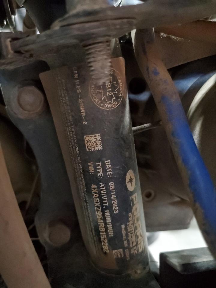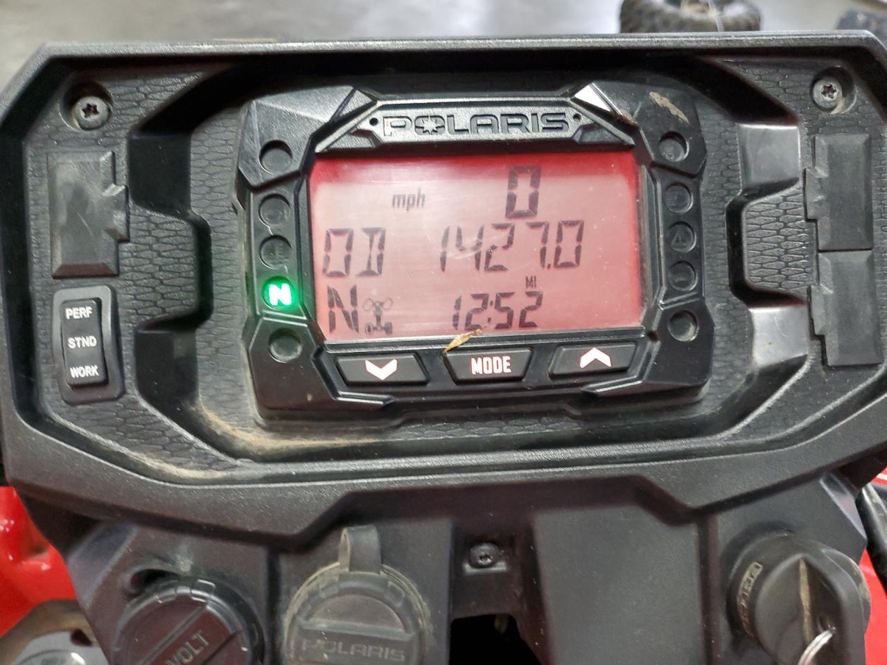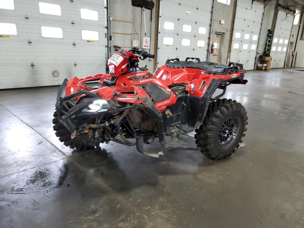 FairThe POLARIS SPORTSMAN 2024, is a red ATV with front-end and side damage. The vehicle starts. The front end shows significant damage, with potential issues to lights and body panels. The wheels appear intact. The interior shows minimal visible damage.