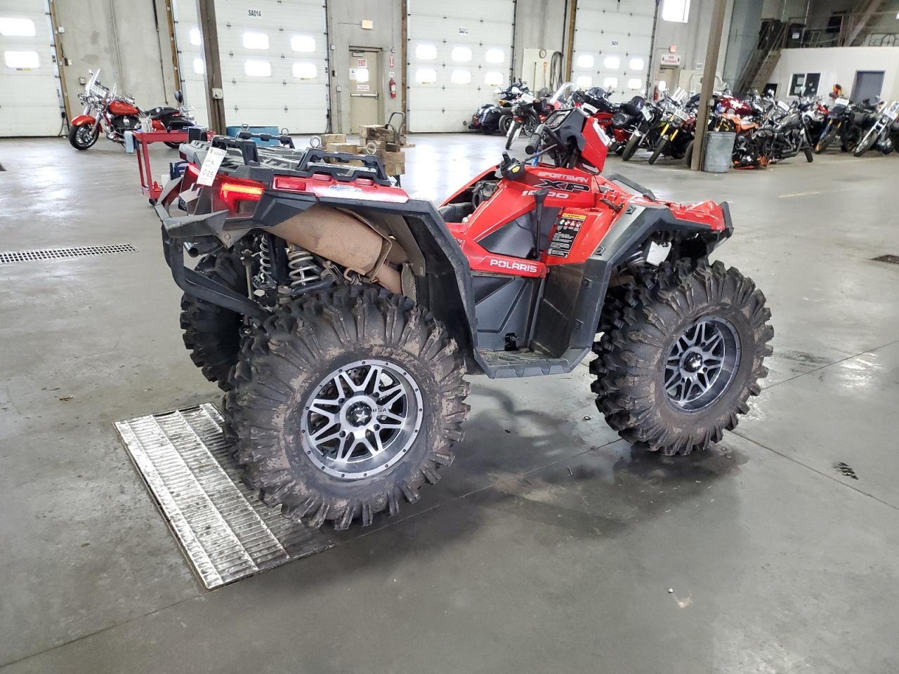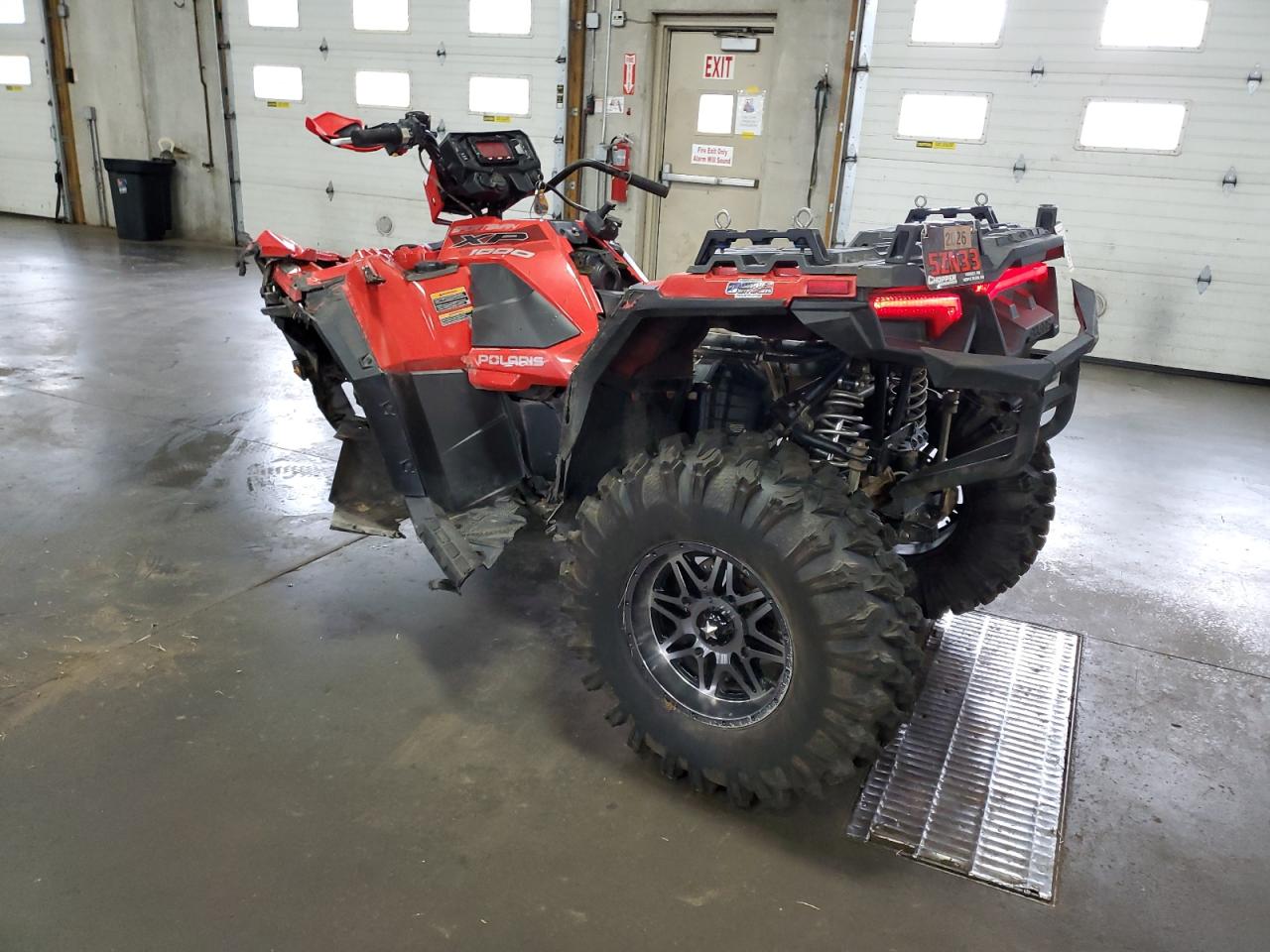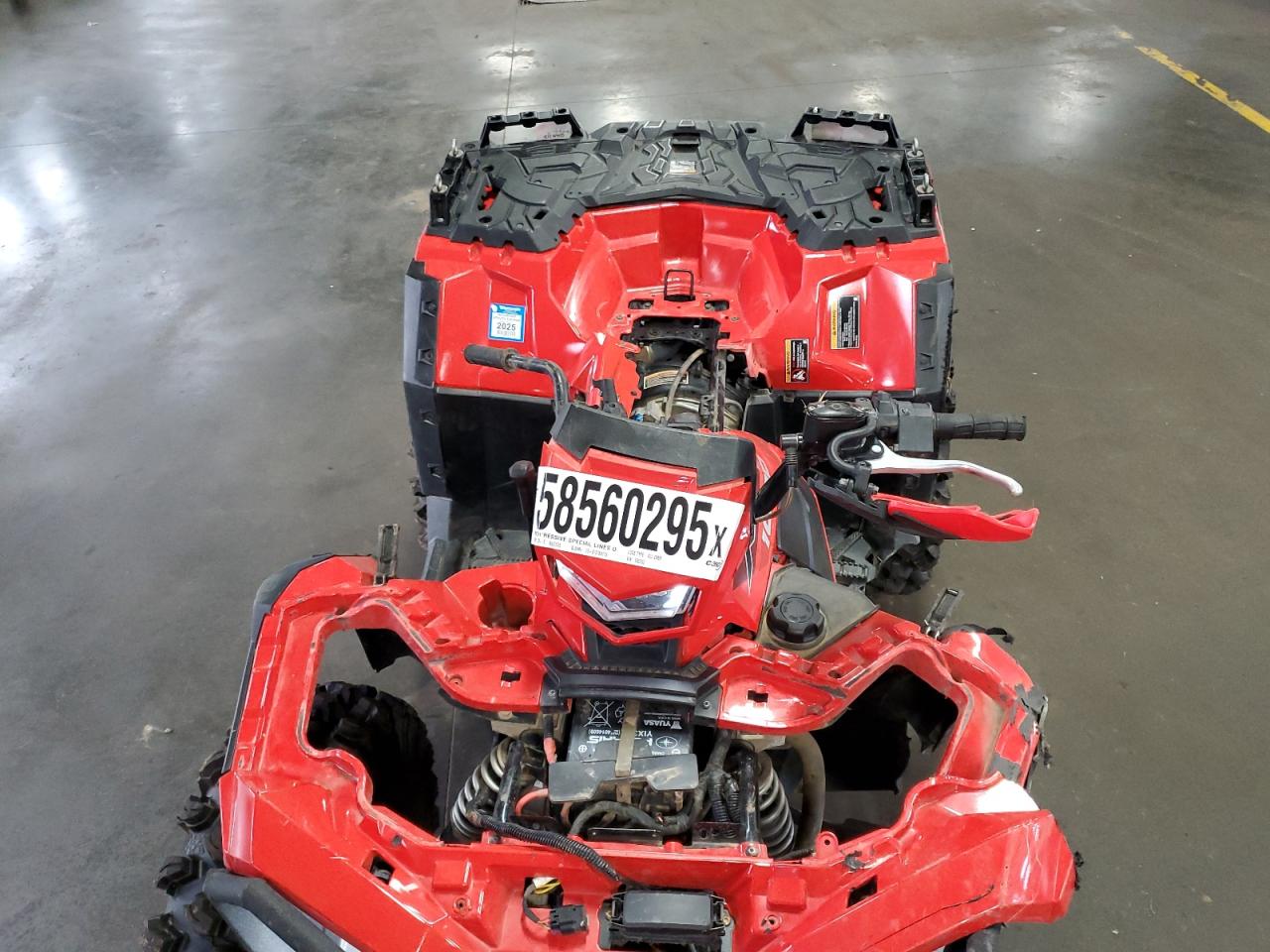 FairThe POLARIS SPORTSMAN 2024, is a red ATV with front-end and side damage. The vehicle starts. The front end shows significant damage, with potential issues to lights and body panels. The wheels appear intact. The interior shows minimal visible damage.