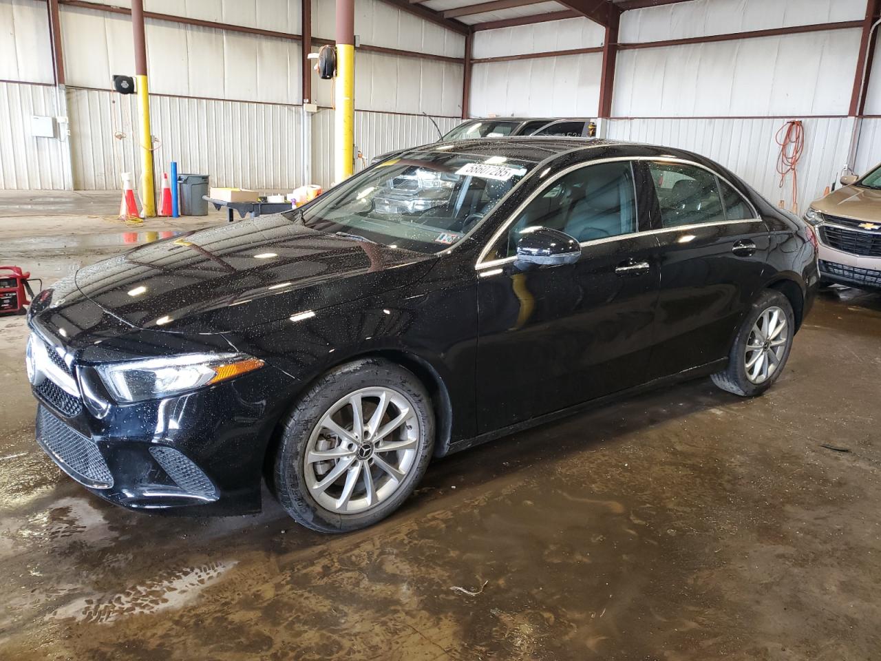 Fair2021 MERCEDES-BENZ A 220 4MAT. This black sedan exhibits significant damage primarily on the side and rear end. The interior shows signs of wear, but is still in good condition. The car is drivable but requires repairs.