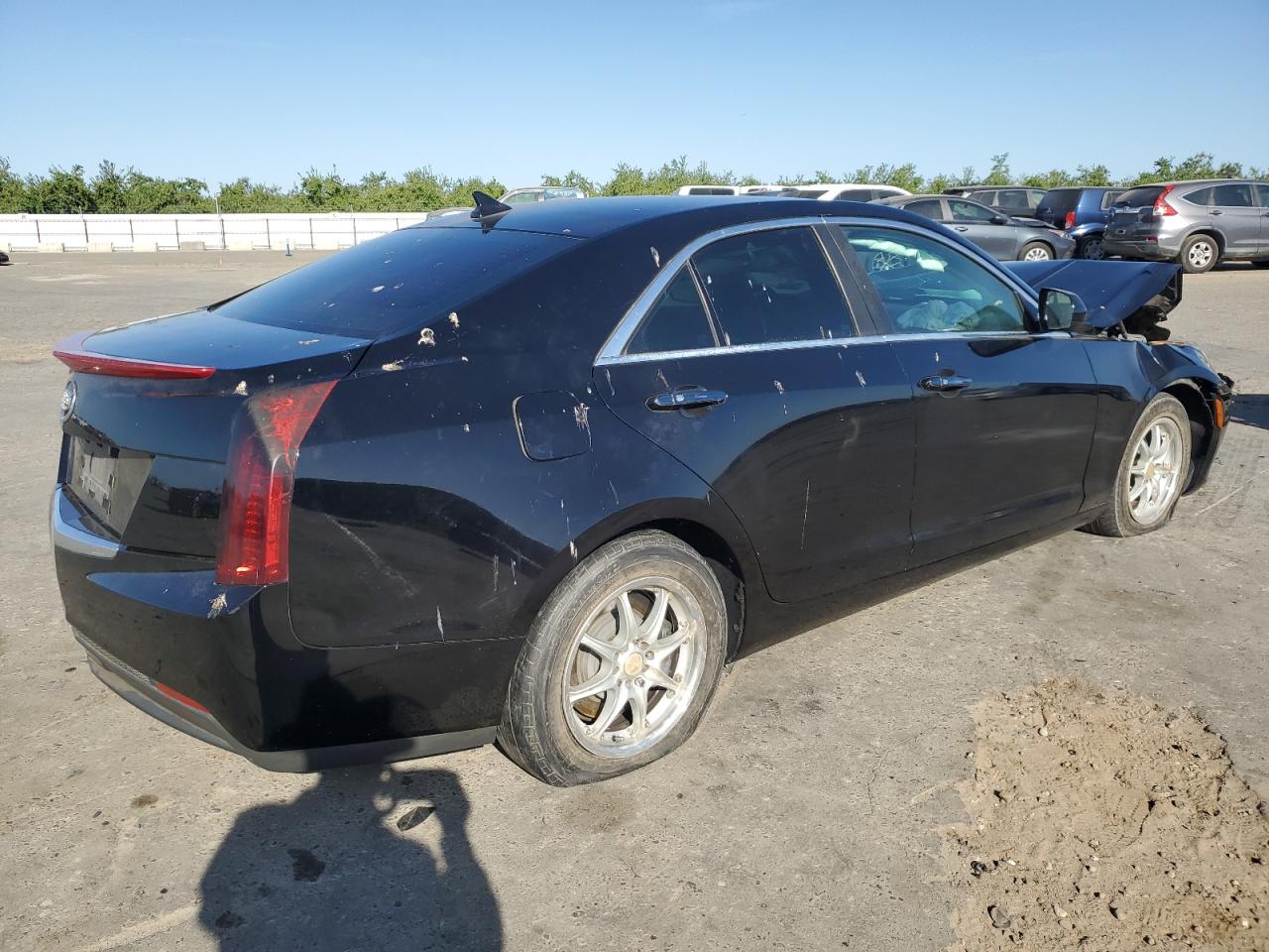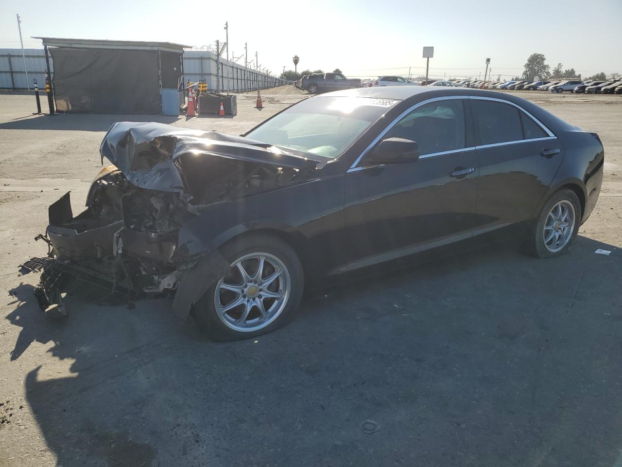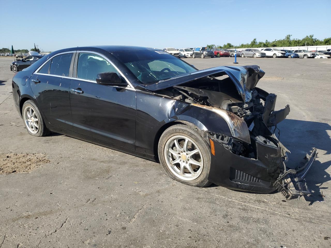 FairThe 2014 Cadillac ATS is heavily damaged. The front end of the car has significant damage. The airbags have deployed, and the interior shows signs of impact. The wheels appear to be intact and lights too. The car's exterior is black and shows front end damage. Overall, the car is in a state of disrepair, requiring substantial repairs.