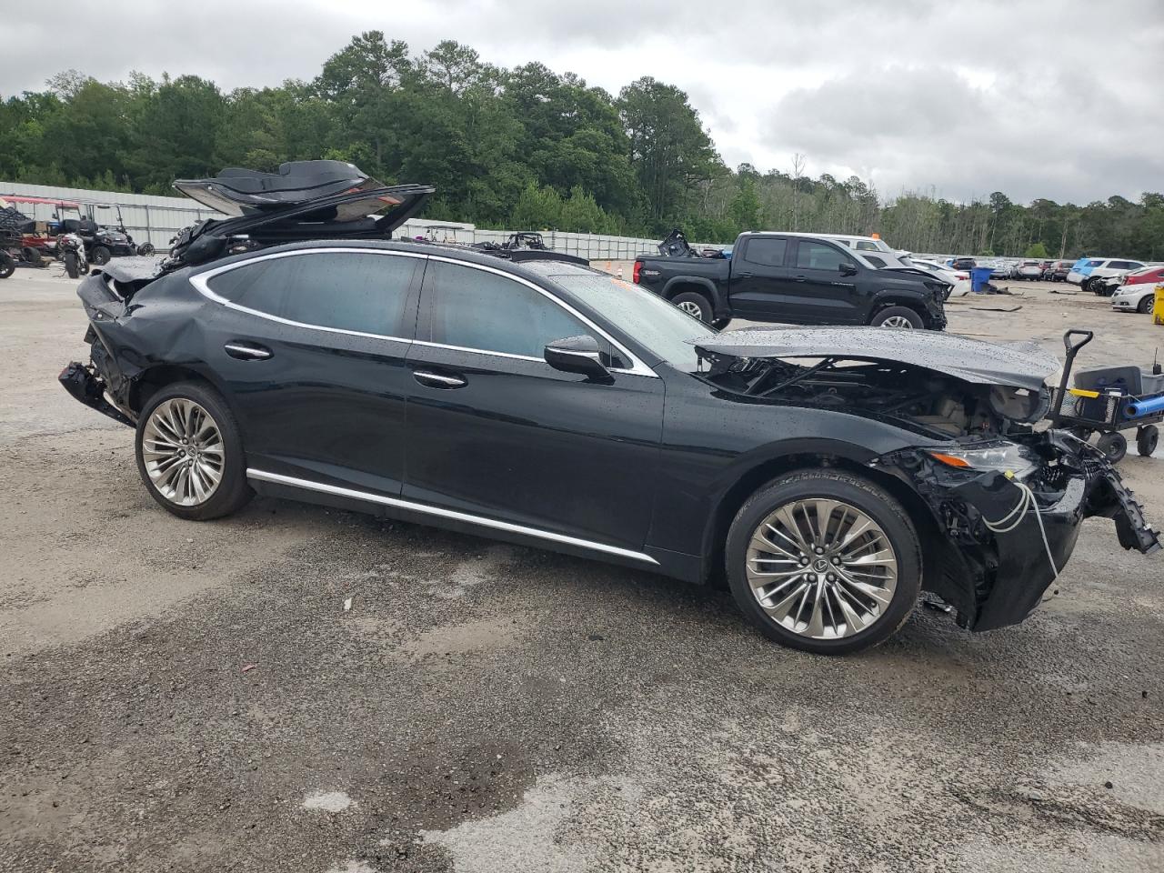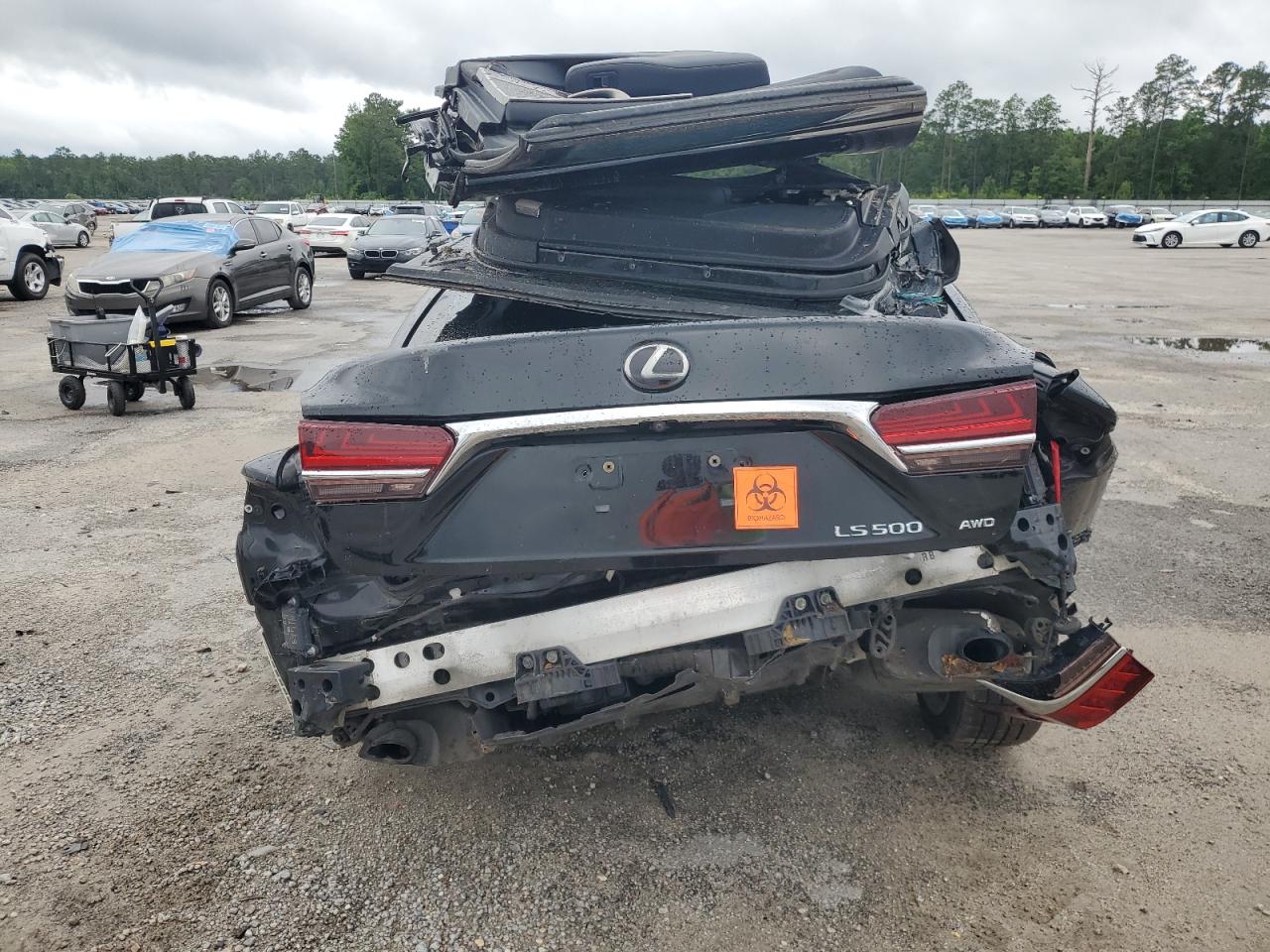 PoorThe 2018 Lexus LS 500 in black has sustained significant damage. The body panels are severely damaged, with major impacts visible on the front and rear. The interior shows signs of airbag deployment and extensive damage. The vehicle's overall condition is poor, indicating extensive repairs are required. The car appears to be beyond repair and needs a lot of new parts.