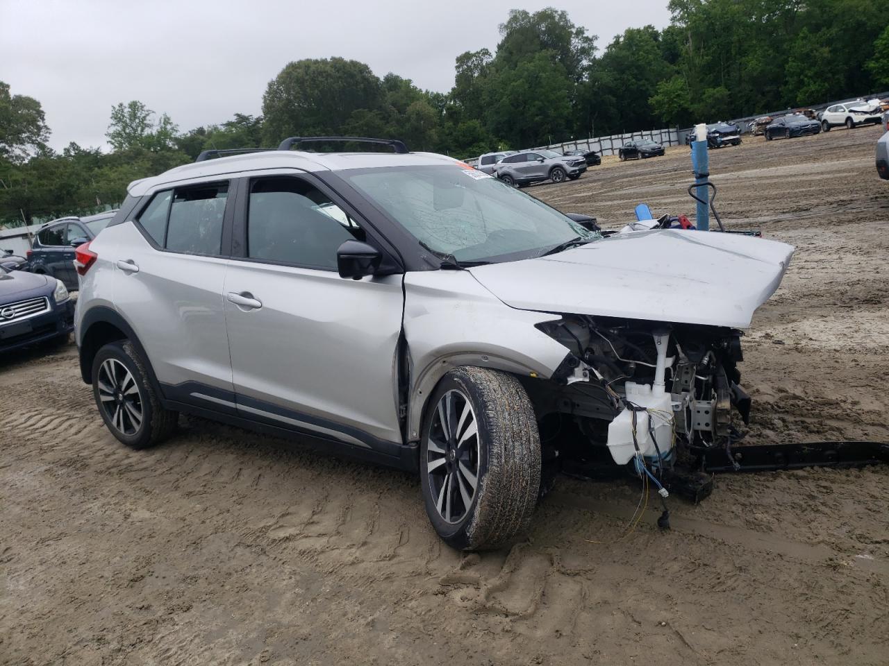 PoorThe 2019 Nissan Kicks S is a compact SUV known for its fuel efficiency and affordability. This particular vehicle, however, has sustained significant damage. The primary damage is to the front end, and secondary damage to the side. The car is silver.