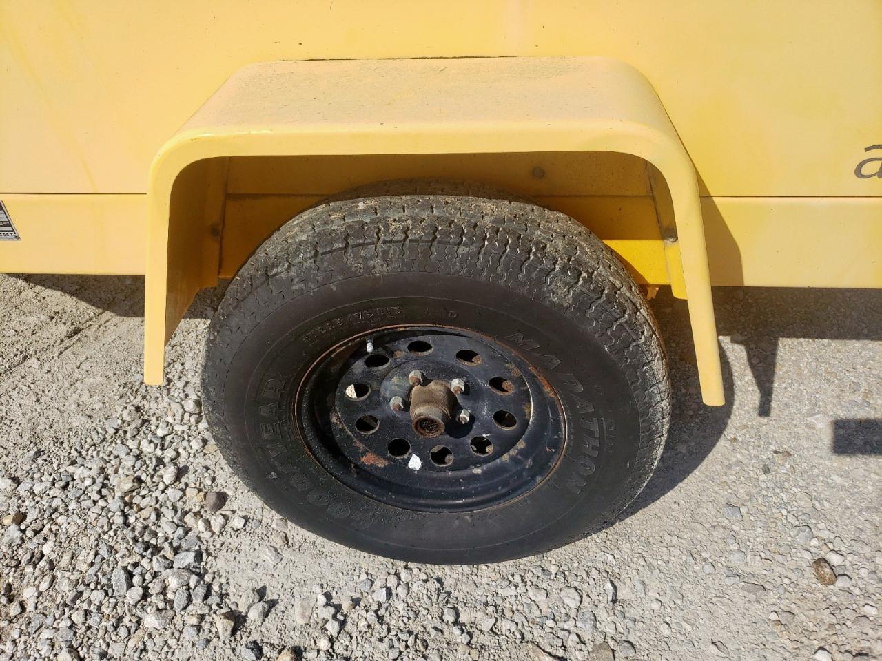 The trailer exhibits normal wear and tear typical of its age and use. Minor dents and scratches are present on the body. The wheels are in acceptable condition. There is no readily apparent damage to the interior.