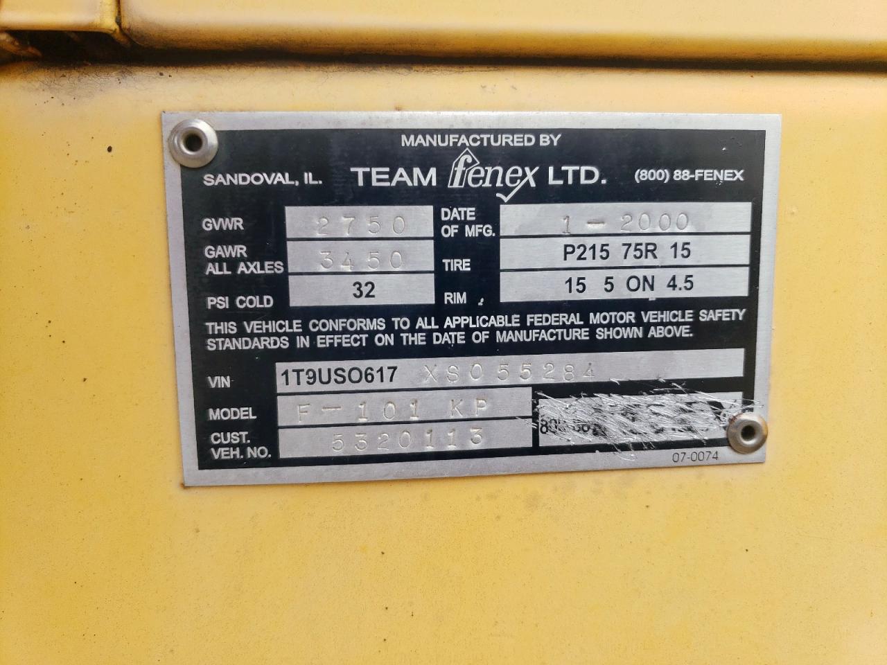 GoodThis TEAM FENEX UNKNOWN 2000 is a yellow road sign trailer. The primary damage is normal wear, with secondary minor dents and scratches. The vehicle appears drivable, indicated by the lack of mechanical damage. It features a directional arrow light array, indicating its intended use for traffic control or road work. The trailer shows signs of regular use and age, but the wheels and lights seem to be in decent condition. No interior damage is readily visible.