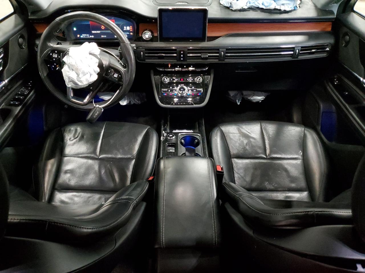 FairThe black 2021 LINCOLN CORSAIR RE has suffered significant front-end and rear-end damage. The front end exhibits substantial impact damage, affecting the hood, bumper, and lights. The rear end also shows damage. The interior appears affected, with deployed airbags and potential damage to the dashboard and steering wheel. The vehicle starts, but the extent of the damage suggests the need for considerable repairs.