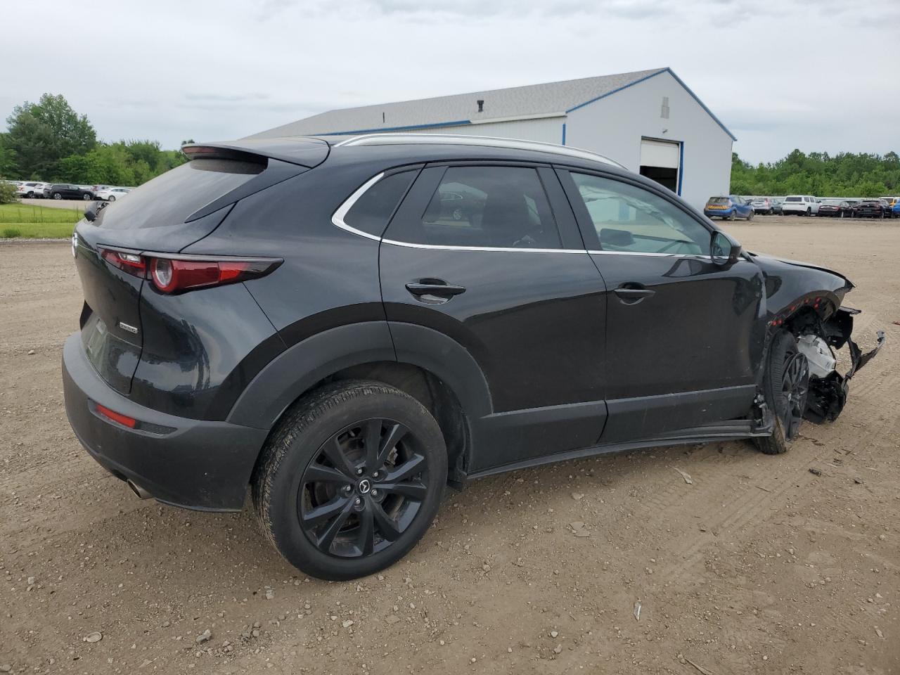 FairThis is a black 2024 MAZDA CX-30 SELE. The car has suffered front-end damage. The airbags have deployed, indicating a significant impact. Interior damage is present as well. The vehicle starts.