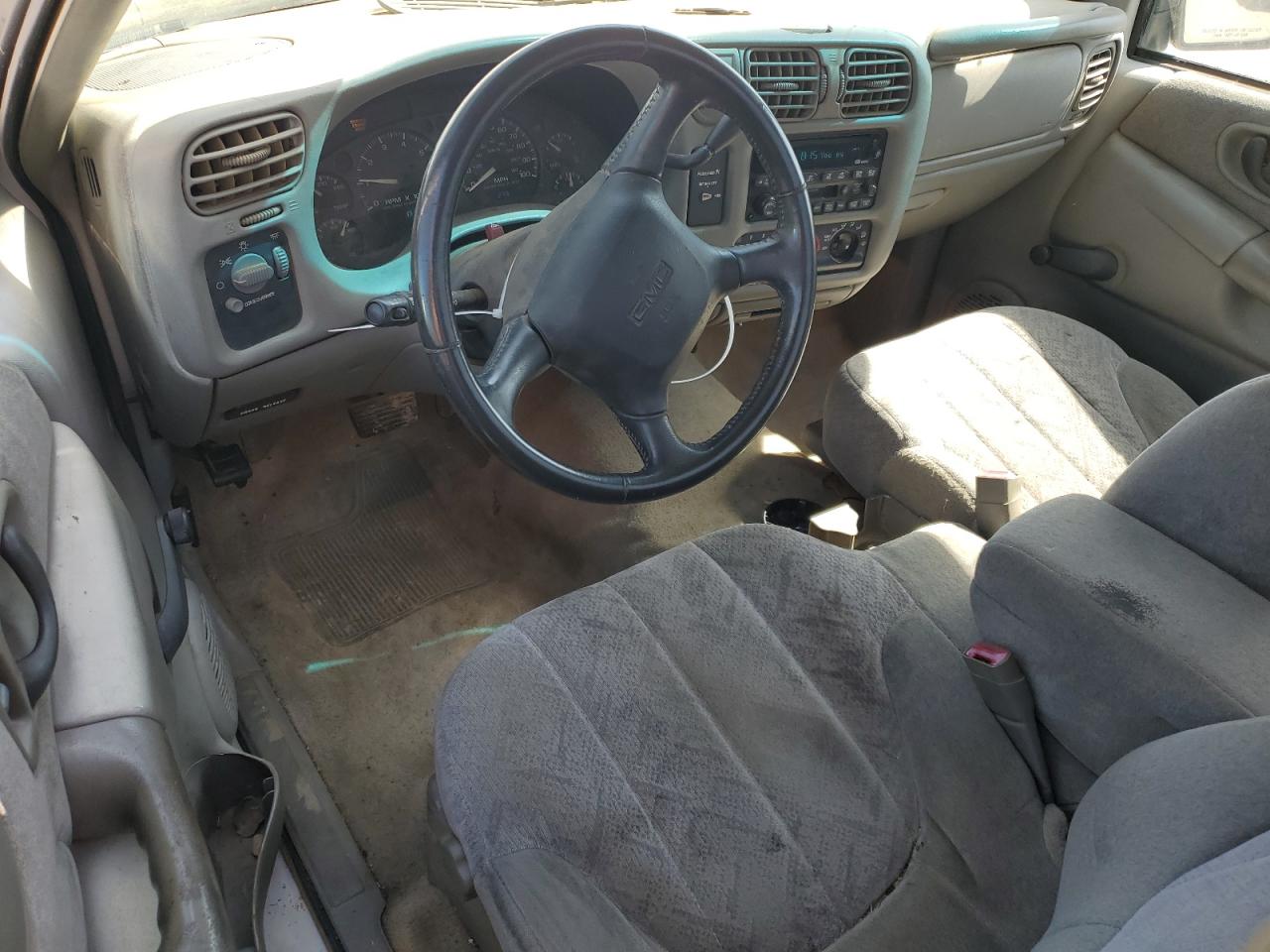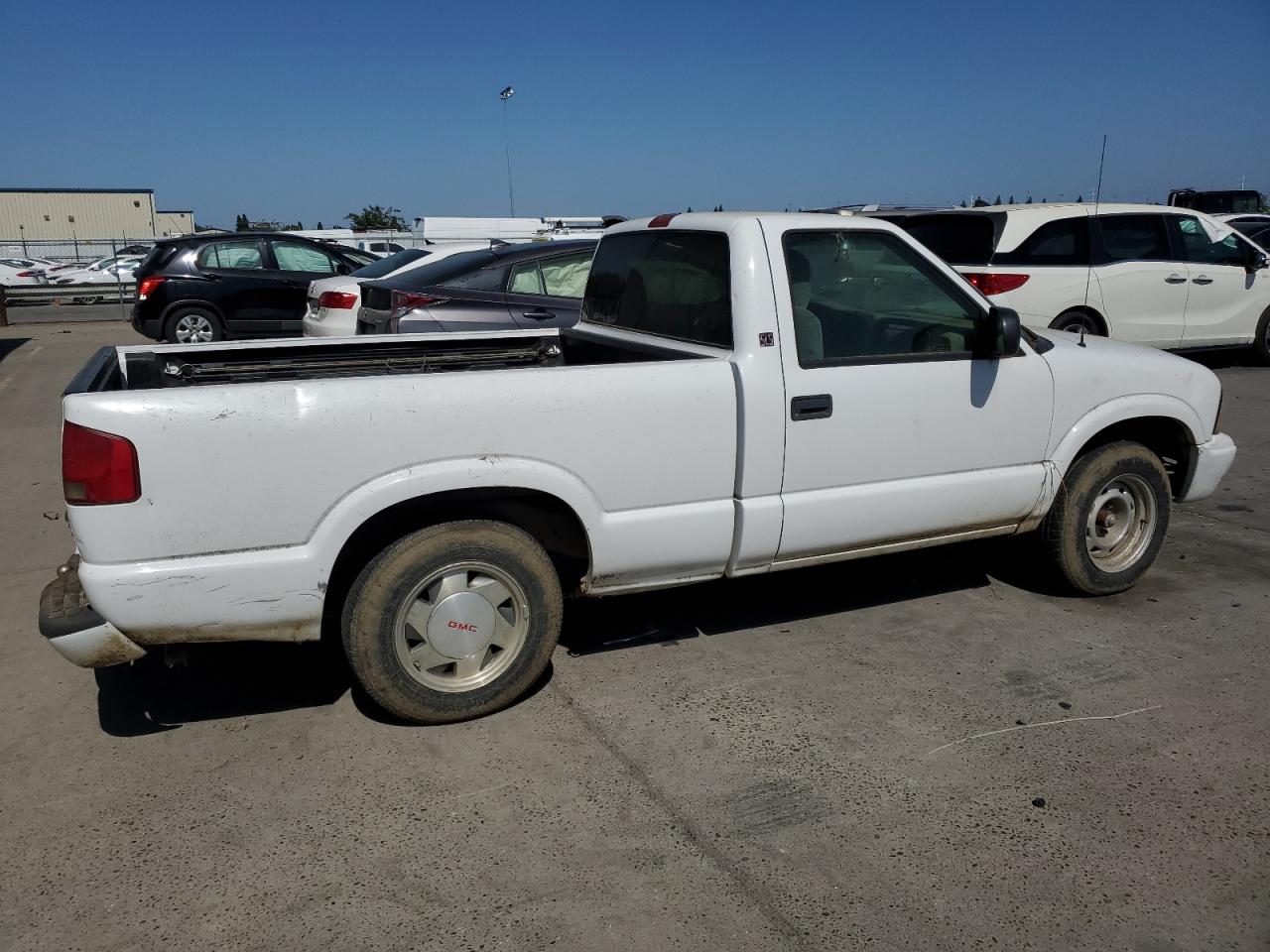 GoodThis is a white 2002 GMC Sonoma. The vehicle shows minor dents and scratches, indicating cosmetic damage. It is a Run & Drive Verified car. The interior shows moderate wear and tear, while the exterior has some visible damage. The wheels and lights appear to be in acceptable condition, and the glasses are intact. The vehicle is drivable but may require some repairs. The airbag is not visible to be damaged.