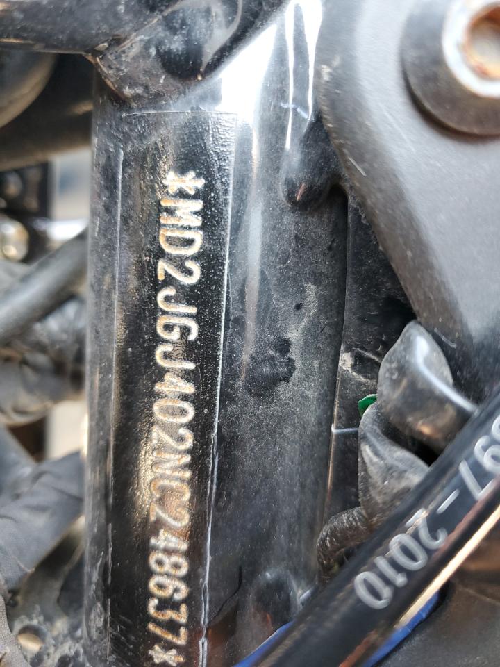The motorcycle displays signs of vandalism, with cosmetic and body damage evident. This includes damage to body panels, suggesting a need for repairs.