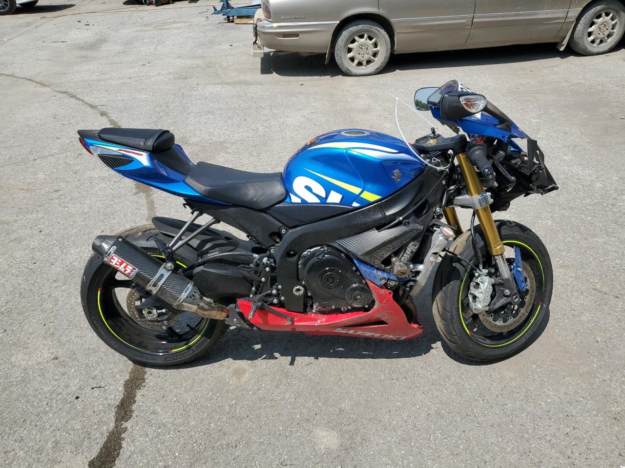 Fair2016 SUZUKI GSX-R750 with front-end and side damage, blue color, and is Run & Drive Verified. The motorcycle shows significant front-end damage, including the fairing, lights, and front suspension. Side damage is also present. The wheels appear to be intact. The interior condition seems to be in very good condition. The vehicle is drivable but requires repairs. Summary: Motorcycle with visible damage, primarily to the front end and side. The overall state is fair. Search Query: SUZUKI GSX-R750 2016, damaged motorcycle, front-end collision, side impact, blue, drivable, requires repair, cosmetic, body damage.