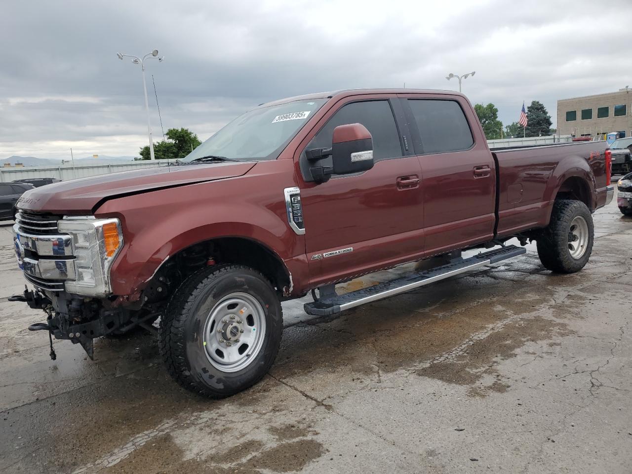 FairThe 2017 Ford F350 Super Duty, burgundy in color, exhibits front-end damage, a "Run & Drive Verified" status. The vehicle's body has damage and its wheel, lights, and glasses look in good condition. The interior shows minimal wear and tear. The vehicle is drivable but requires repairs.