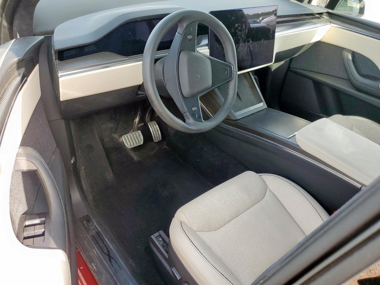 The Tesla Model X has significant damage including body panel damage, especially to the front end. Mechanical issues are also present. The wheels appear to be in good condition.