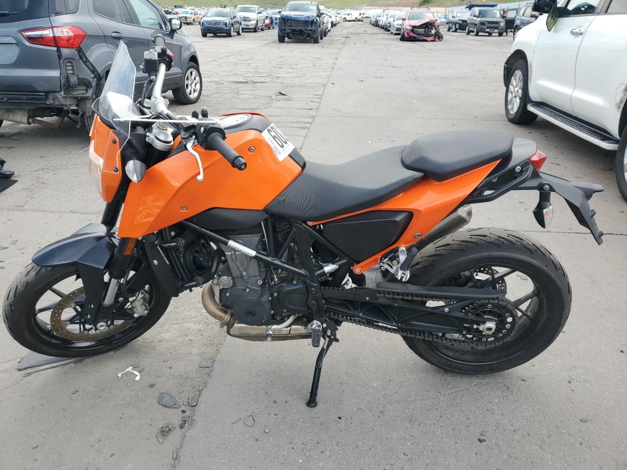 FairThe KTM 690 DUKE 2017, an orange motorcycle, shows signs of damage, indicating a rollover incident. The primary damage is categorized as rollover, with secondary damage noted as no damage. The vehicle is drivable and classified as Run & Drive Verified.