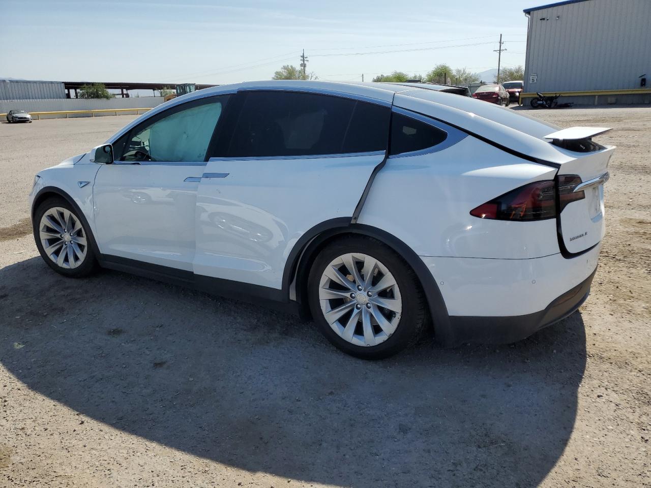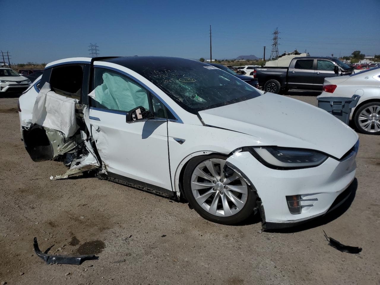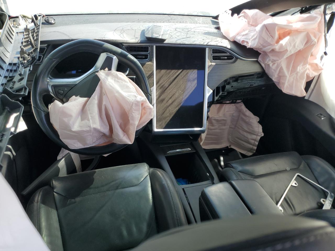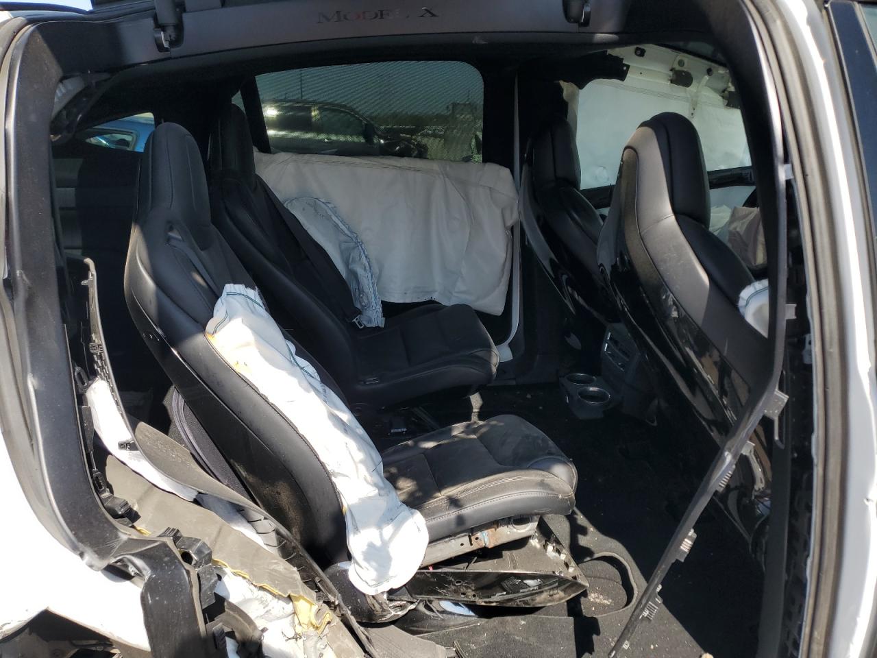 PoorThis is a white 2016 Tesla Model X, significantly damaged. Primary damage is on the side, with secondary damage to the undercarriage. The exterior shows extensive damage to the body panels, indicating a severe impact. Both front and rear doors on the driver's side are heavily damaged, and the side of the car is caved in. Airbags have deployed. Interior damage is evident, with deployed airbags and visible damage to the dashboard and interior trim. The wheels appear to be intact, but the overall state suggests the vehicle is not drivable and requires considerable repair.