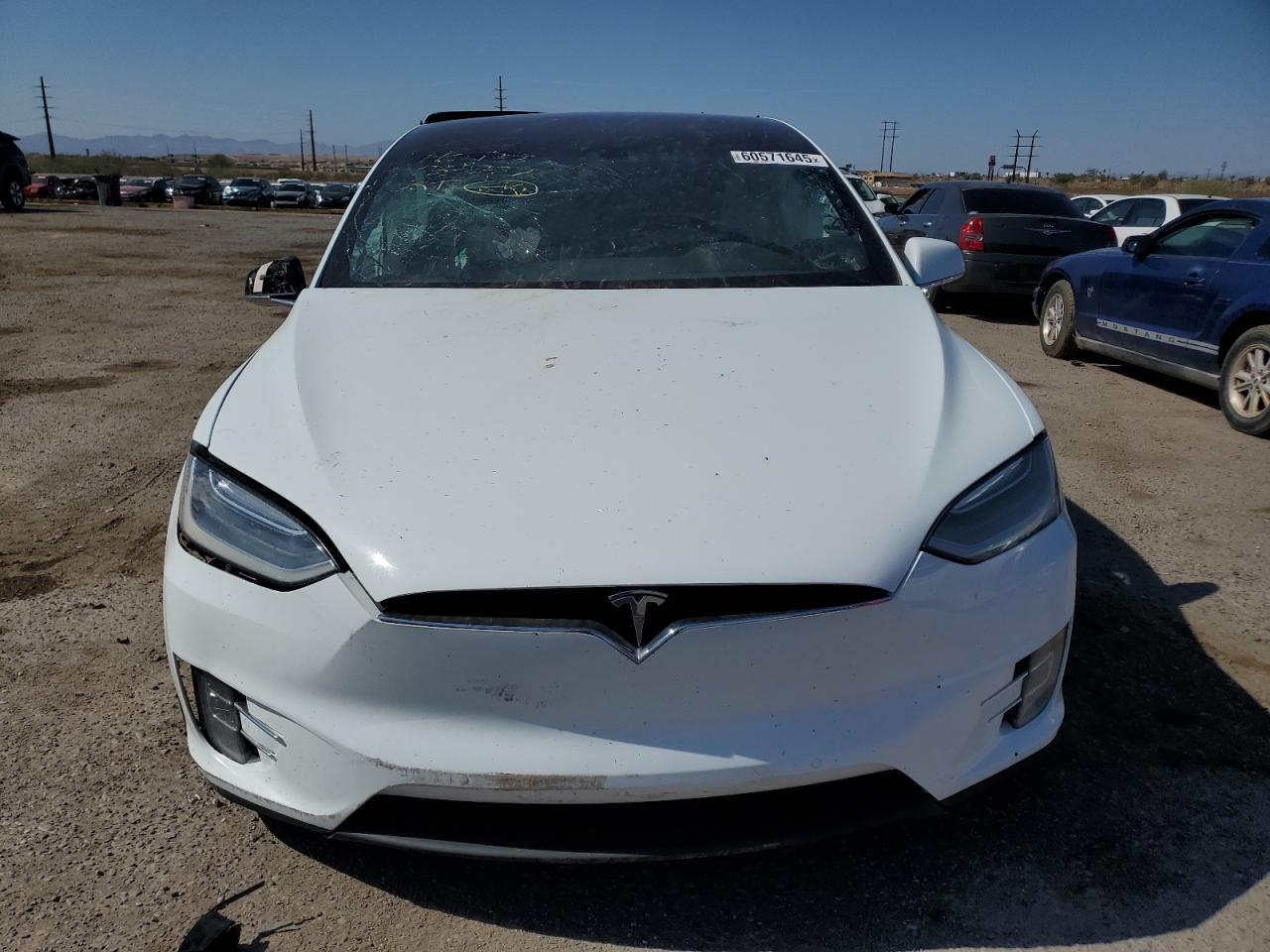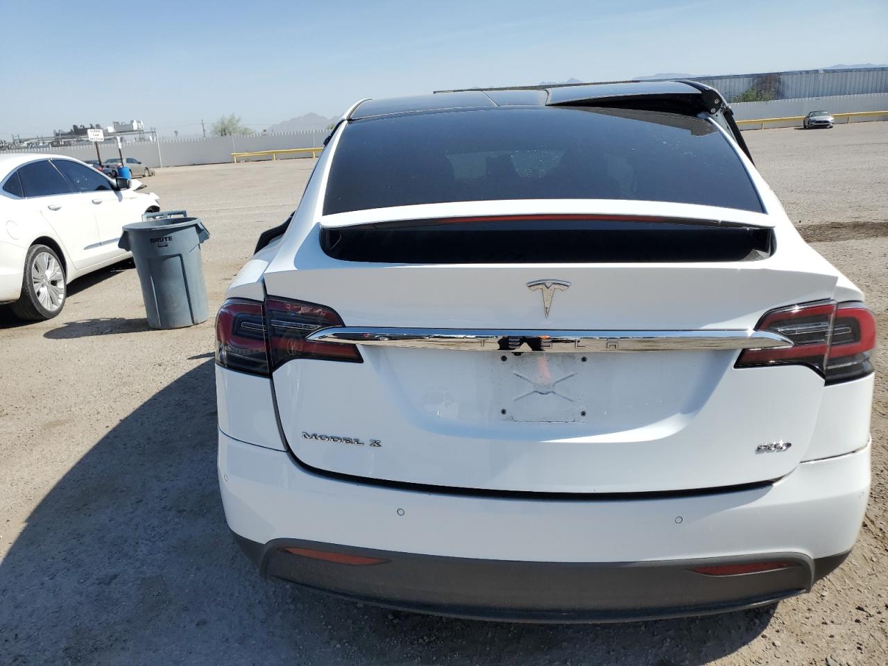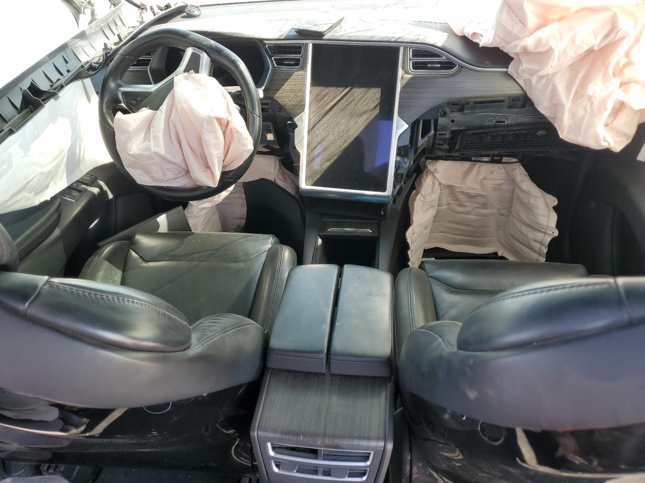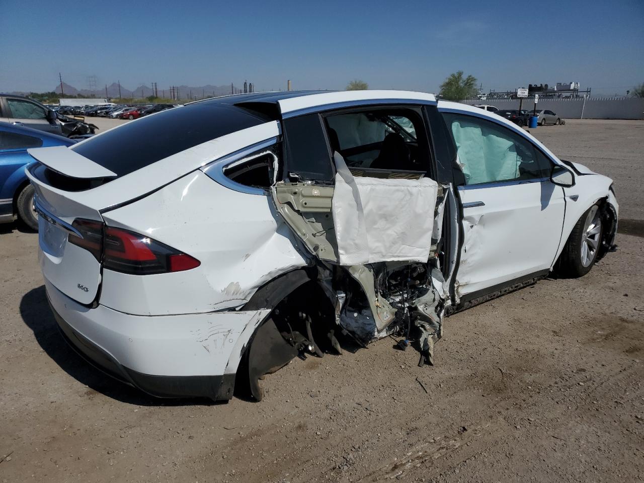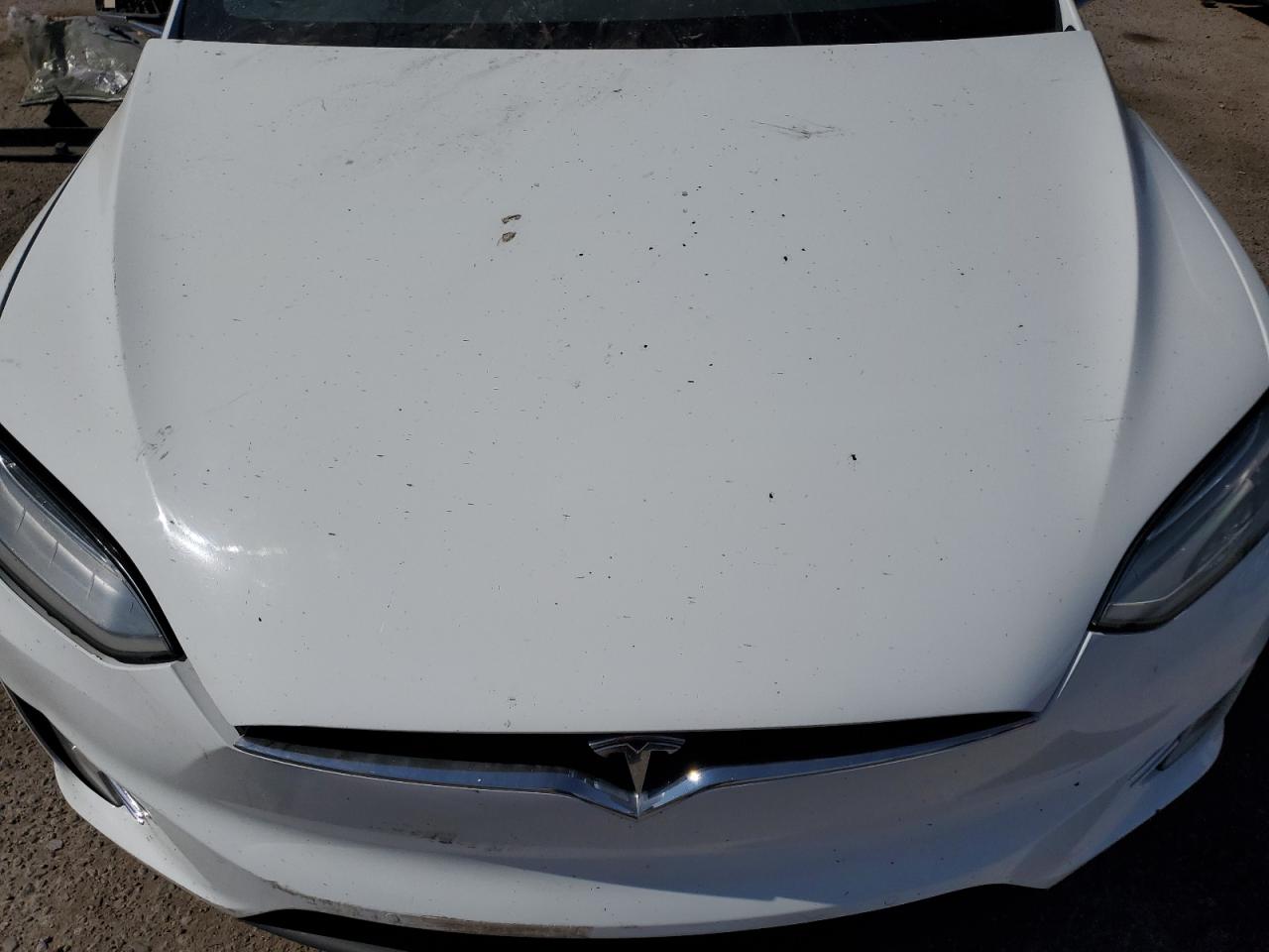 PoorThis is a white 2016 Tesla Model X, significantly damaged. Primary damage is on the side, with secondary damage to the undercarriage. The exterior shows extensive damage to the body panels, indicating a severe impact. Both front and rear doors on the driver's side are heavily damaged, and the side of the car is caved in. Airbags have deployed. Interior damage is evident, with deployed airbags and visible damage to the dashboard and interior trim. The wheels appear to be intact, but the overall state suggests the vehicle is not drivable and requires considerable repair.