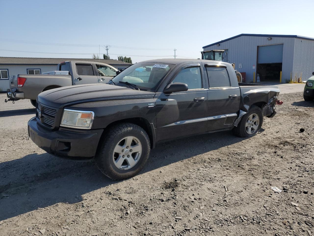 The Dodge Dakota has sustained significant damage to the rear end, indicating collision impact. The undercarriage also has damage. The interior has minimal visible damage.