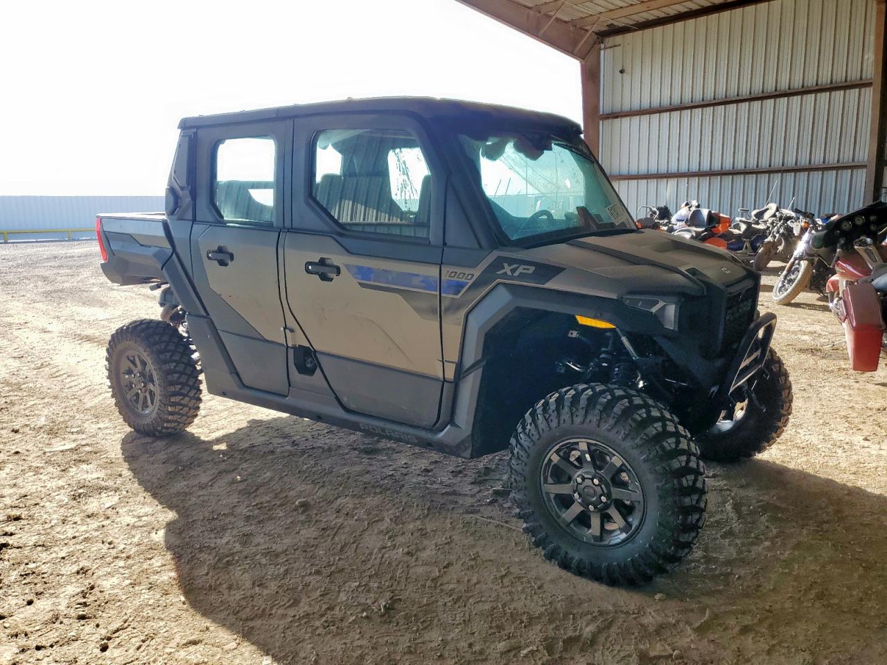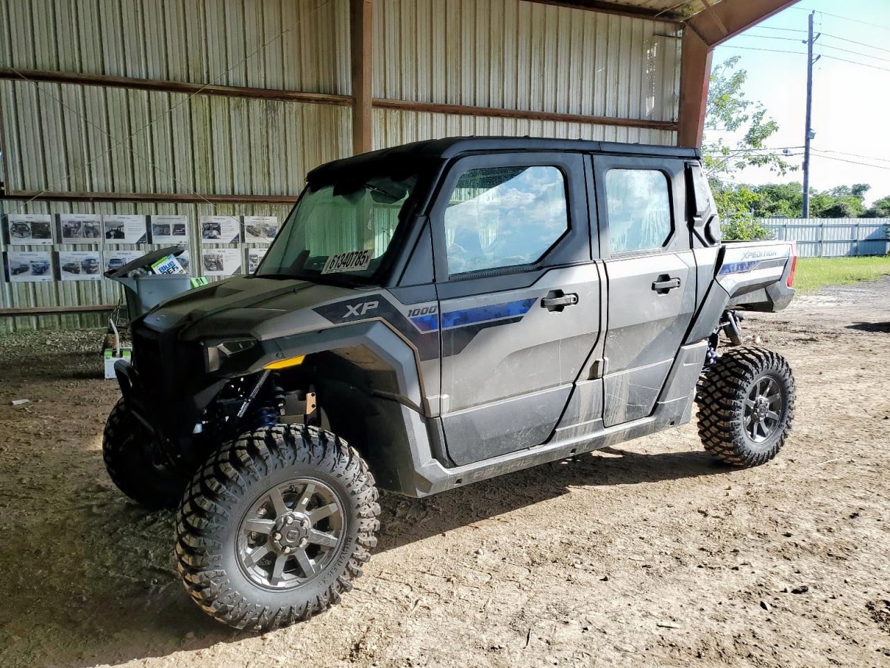 FairThe gray POLARIS XPEDITION 2024 shows signs of water/flood damage and a rollover event. The exterior has moderate visible damage, and the wheels appear to be functional, but the vehicle needs repairs. The interior also shows signs of damage. The car is drivable.