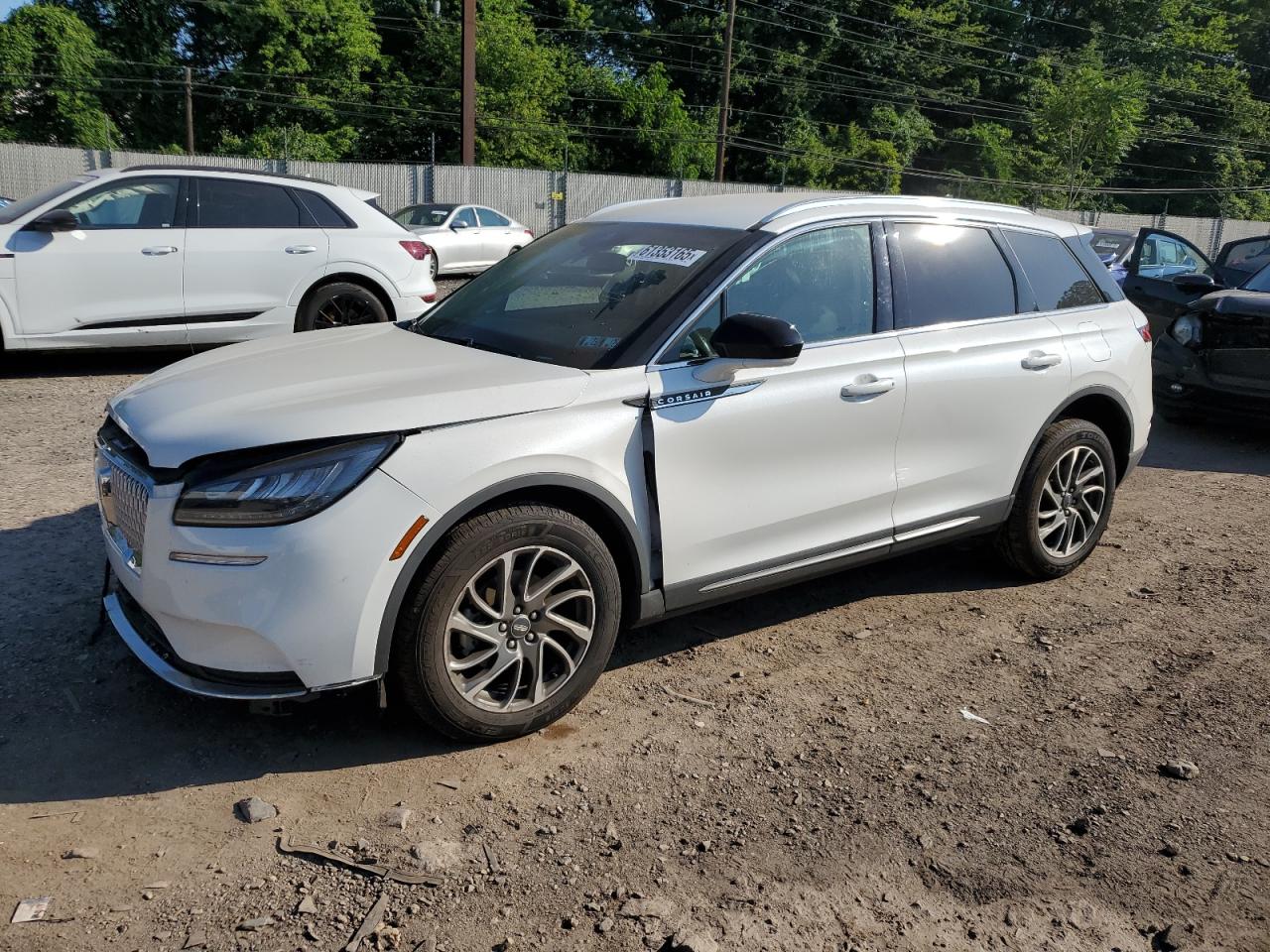 FairThis is a white 2021 Lincoln Corsair with significant front end and side damage. The vehicle's exterior shows extensive damage, and the interior appears to have airbag deployment. The car is likely in need of considerable repair. The odometer reads 49958.4 miles.