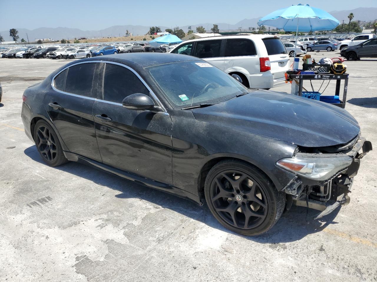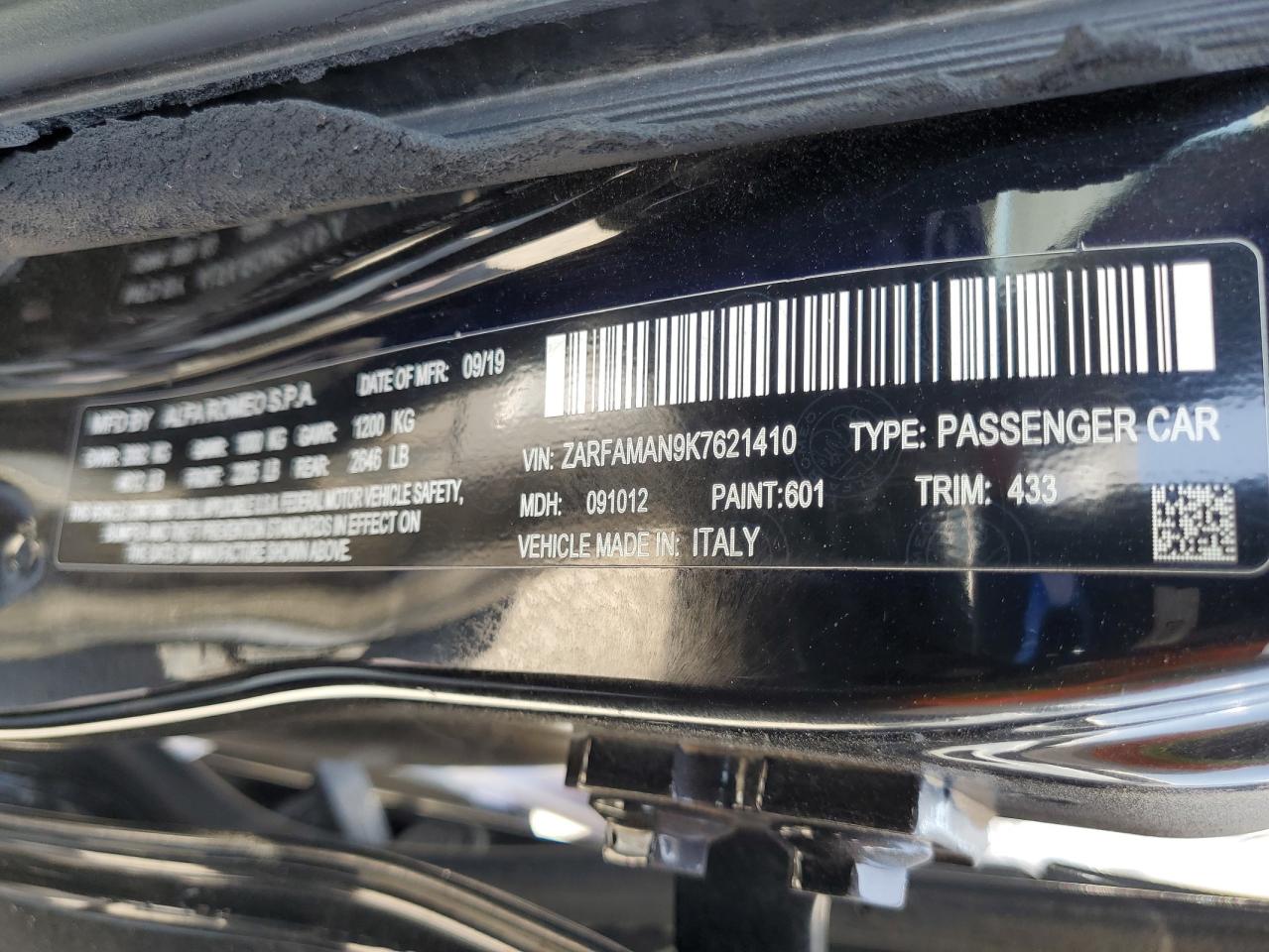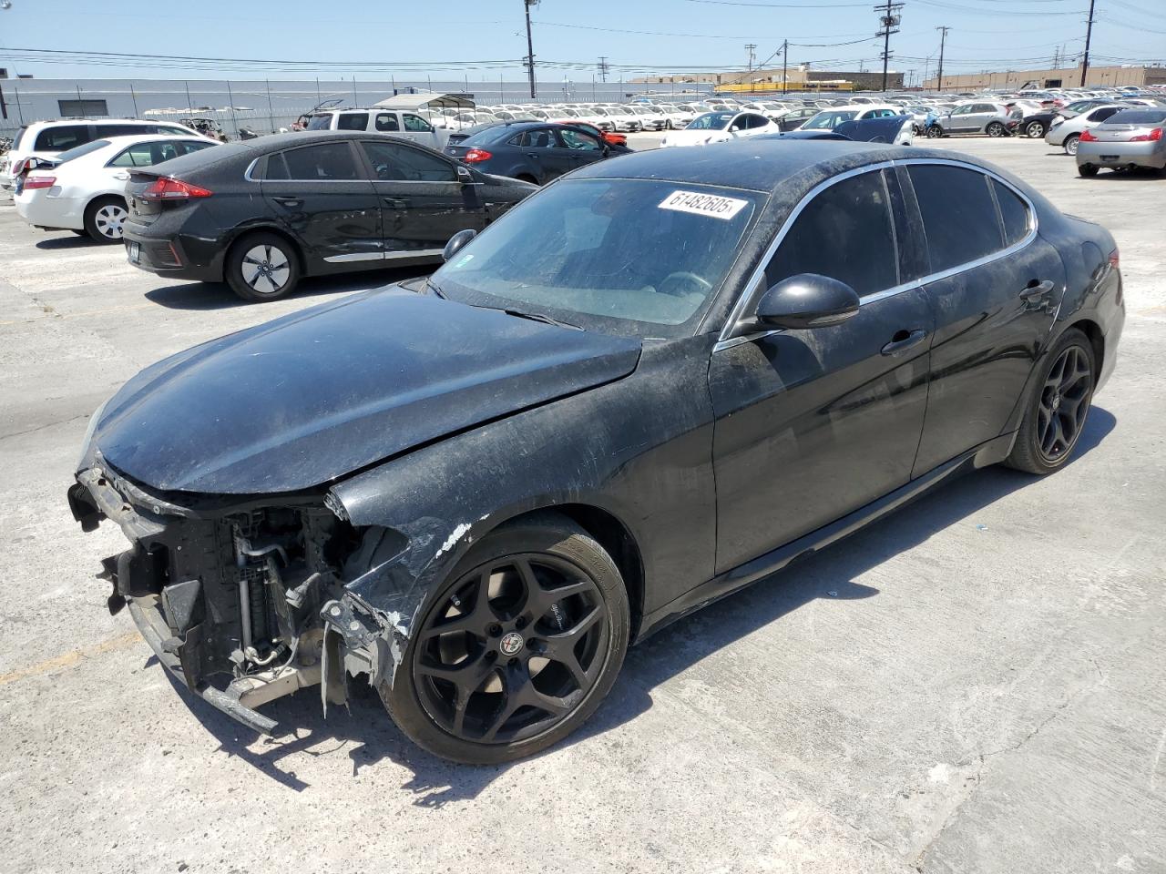 FairThis ALFA ROMEO GIULIA 2019, black in color, shows significant front-end damage, indicating a body damage event. The vehicle is listed as Run & Drive Verified. Exterior damage includes damage to the front end, while the wheels and lights appear to be intact. The interior shows some signs of wear consistent with the vehicle's age and mileage. There are no apparent mechanical issues. Summary: The car has front-end damage and requires repair. Overall Condition is Fair, Vehicle Damage Category is Body.