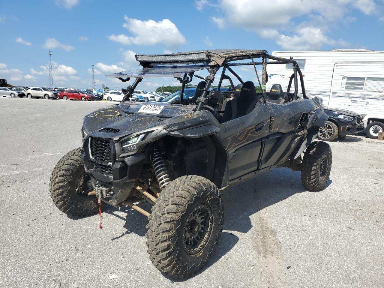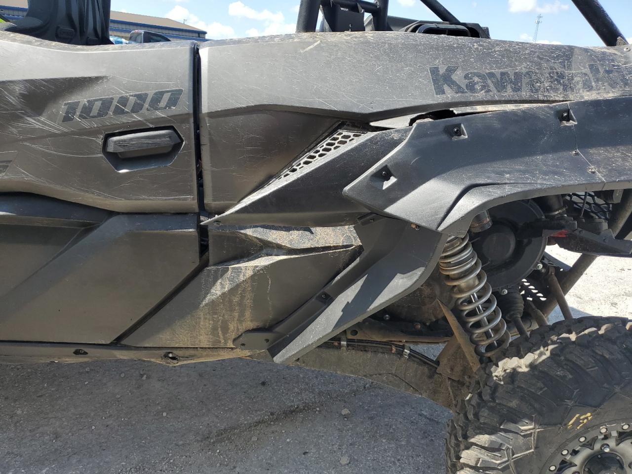 FairThe KAWASAKI KRT1000 B 2024 is a black UTV, with visible damage from a rollover, the vehicle is listed as Run & Drive Verified. The exterior shows signs of damage from the rollover, with body panel damage. The interior shows damage as well. The wheels appear to be in good condition. The dashboard indicates 0 mph with a water temperature of 118°F. This UTV has been involved in a rollover incident.