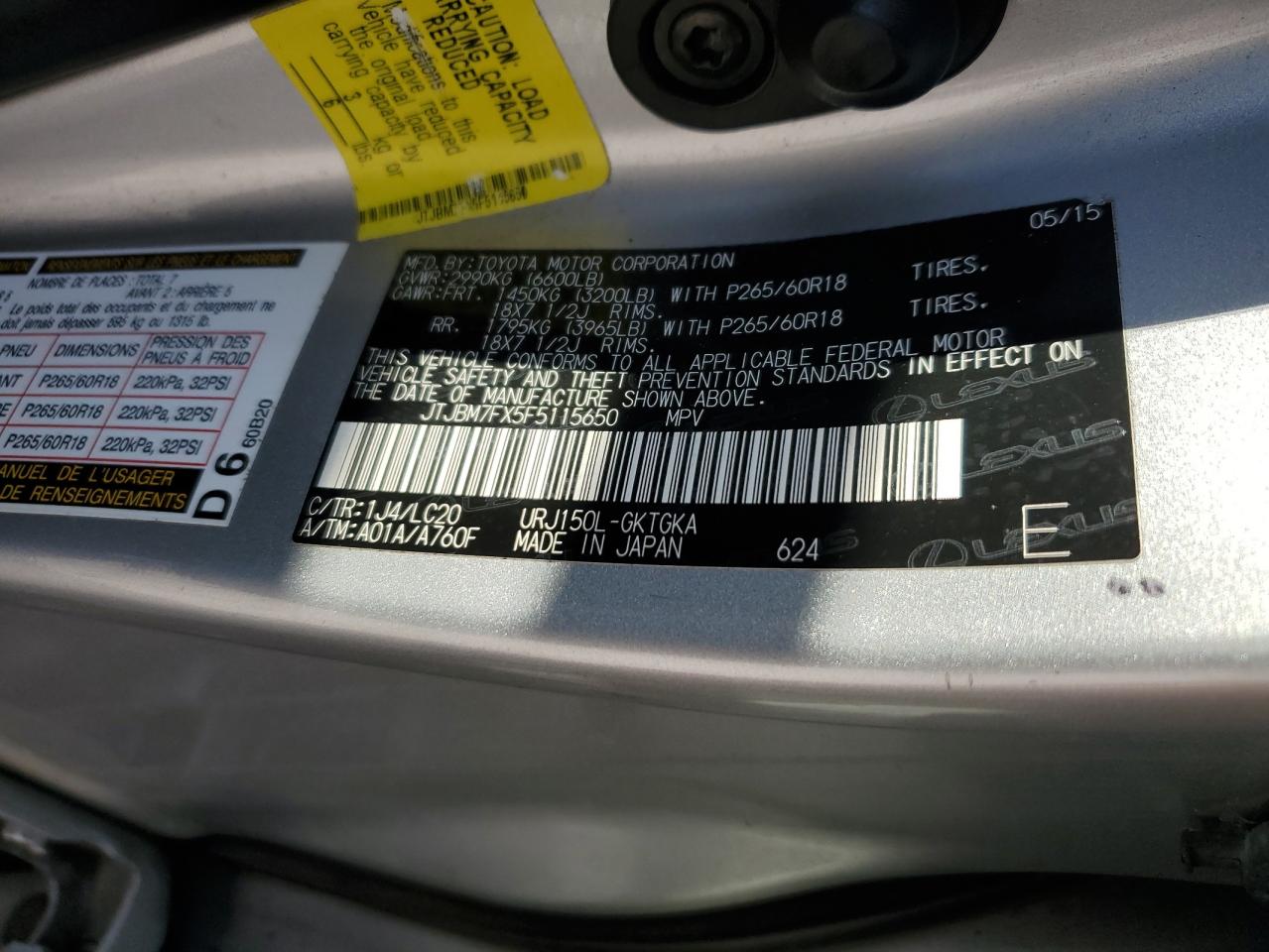 FairThe 2015 LEXUS GX 460 is a silver SUV. The primary damage is to the front end. The car is a Run & Drive Verified vehicle. The wheels appear to be in good condition. The lights and glasses seem intact, but the front end collision has caused damage. The interior shows minimal wear and tear.