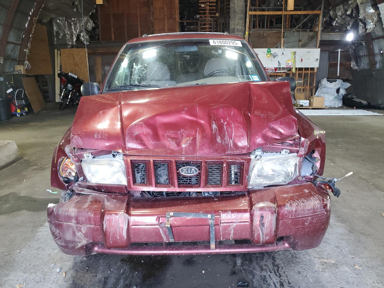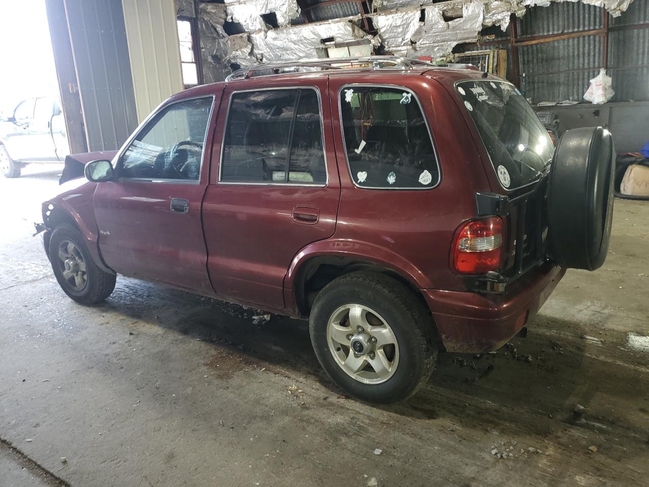 FairThe 2002 KIA Sportage in burgundy exhibits significant front-end damage, primarily impacting the body panels. The interior shows minor wear and tear consistent with its age. The vehicle's overall condition reflects the need for repairs to the exterior. The car is drivable. The vehicle damage category is body, with no mechanical issues.