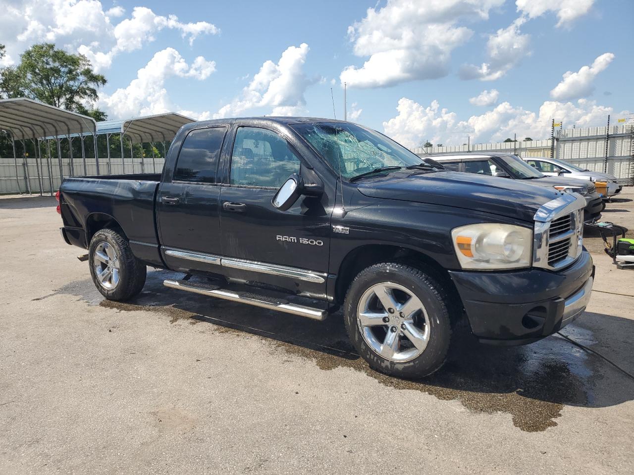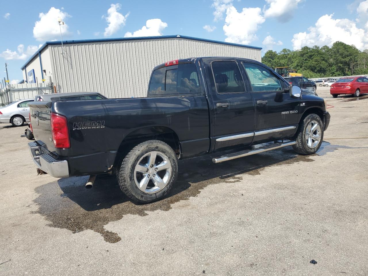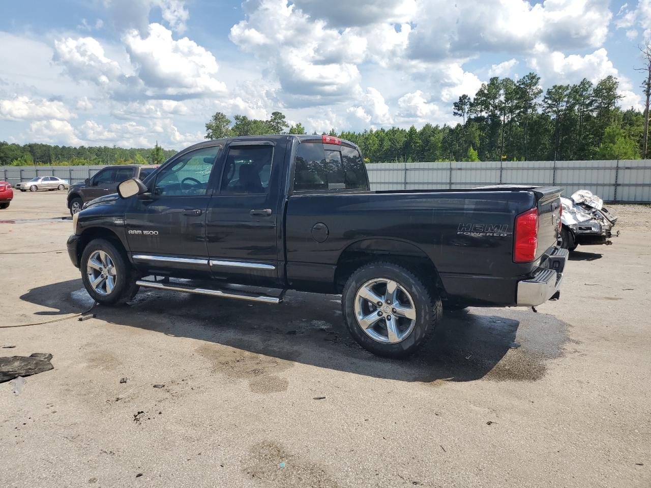 FairThis is a black 2007 Dodge Ram 1500 with Run & Drive Verified status. The primary damage is to the rear end, with secondary damage on the side. The vehicle shows visible signs of wear and tear consistent with its age and mileage.