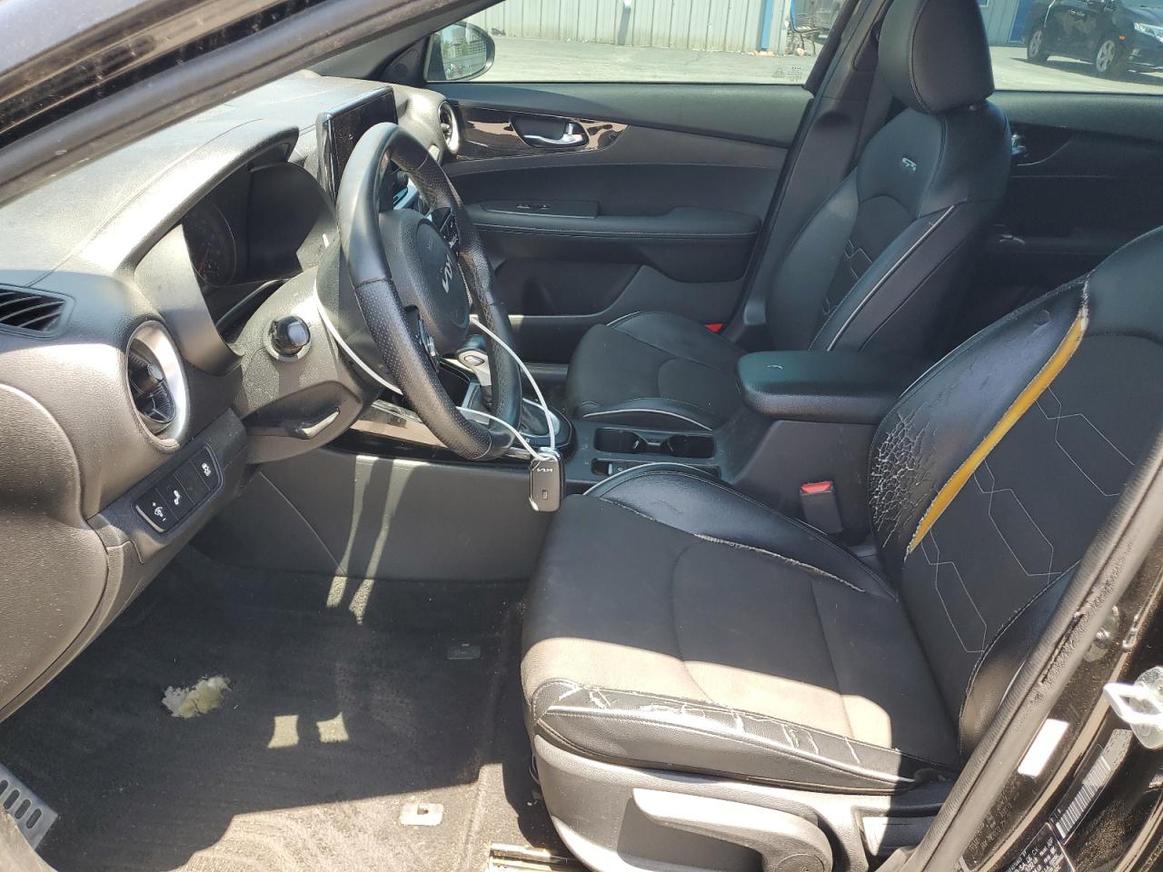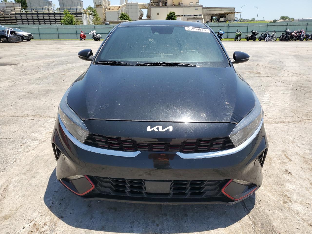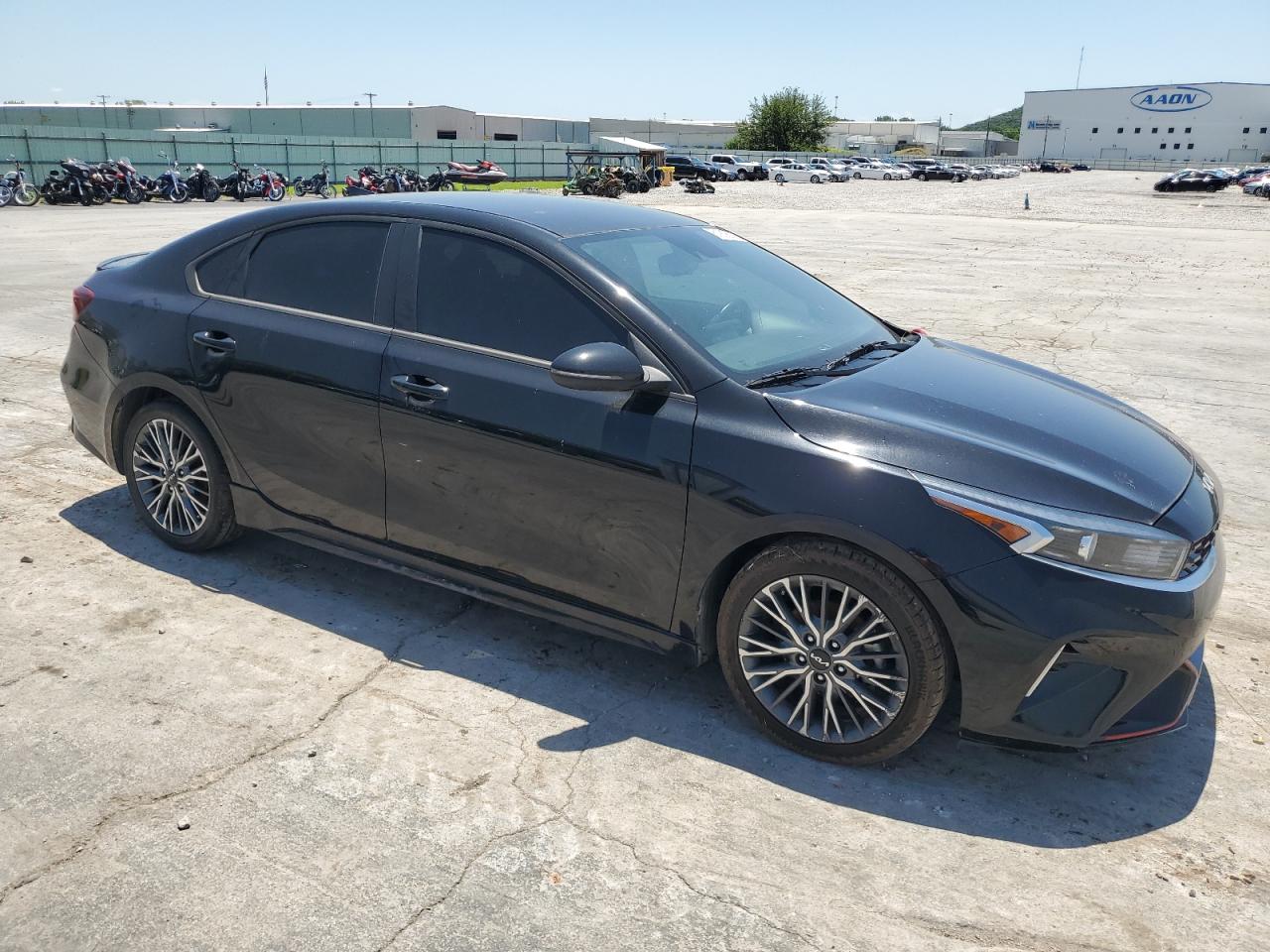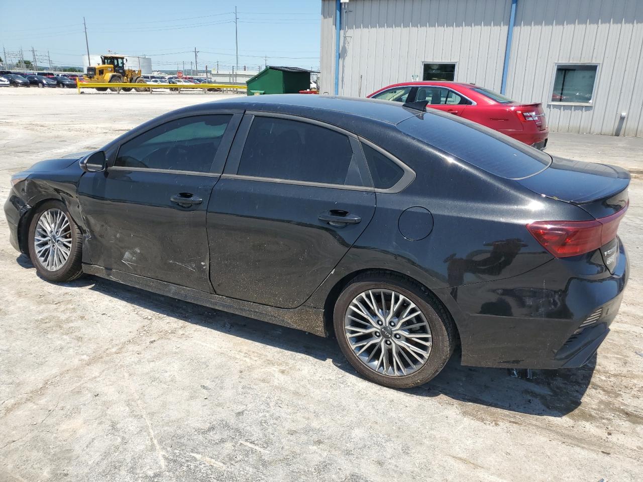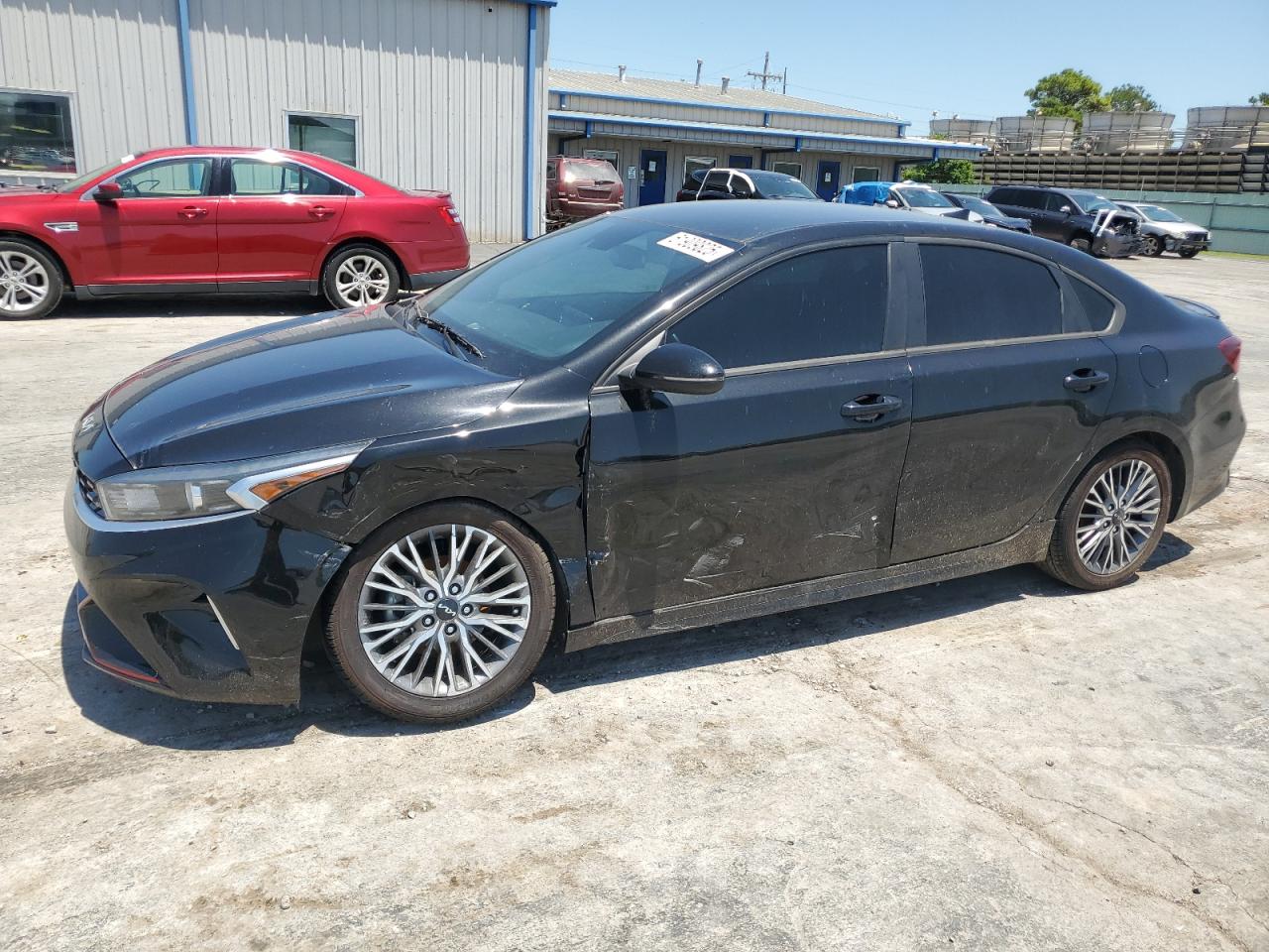 FairThis is a black 2022 KIA FORTE GT L, Run & Drive Verified. The primary damage is to the front end, with secondary damage on the side. The car shows signs of moderate damage to the body panels, suggesting it may require some repairs, but it's still drivable.