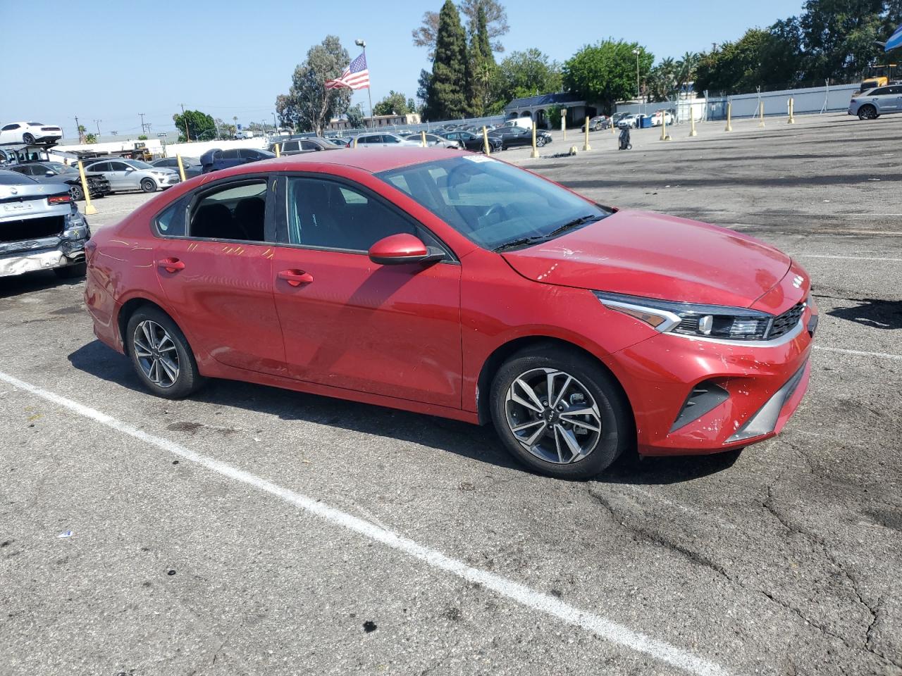 FairThe red 2023 KIA FORTE LX shows signs of vandalism with cosmetic damage. The exterior has moderate damage, while the interior condition is good. The car's overall state is fair, indicating it may require some repairs. The wheels, lights, and glasses appear intact. The primary damage category is body, and there is no mechanical damage. The car is drivable despite the visible damage. The car itself is a compact sedan known for its fuel efficiency and affordability. However, this particular model requires some attention due to the vandalism.