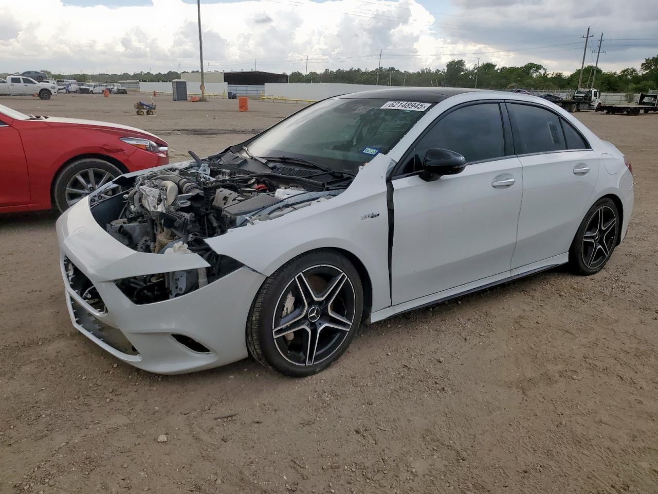 Poor2021 MERCEDES-BENZ A 35 AMG. This white sedan, identified by the DEFAULT start code, shows significant front-end and mechanical damage. The vehicle's exterior has extensive damage, impacting its overall condition. Interior condition is fair. Damage Summary: * Vehicle Damage Category: Mechanical & Body * Overall Condition: Poor * Damage Description: The car has front-end and mechanical damage. The front end is severely damaged. Interior damage observed, the airbags deployed. The vehicle is not drivable and requires extensive repairs.