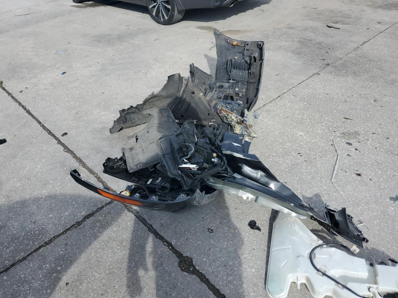 The vehicle has significant front-end damage, including potential damage to body panels. Interior shows moderate wear. Wheels are present and in good condition. No visible damage to the glass.