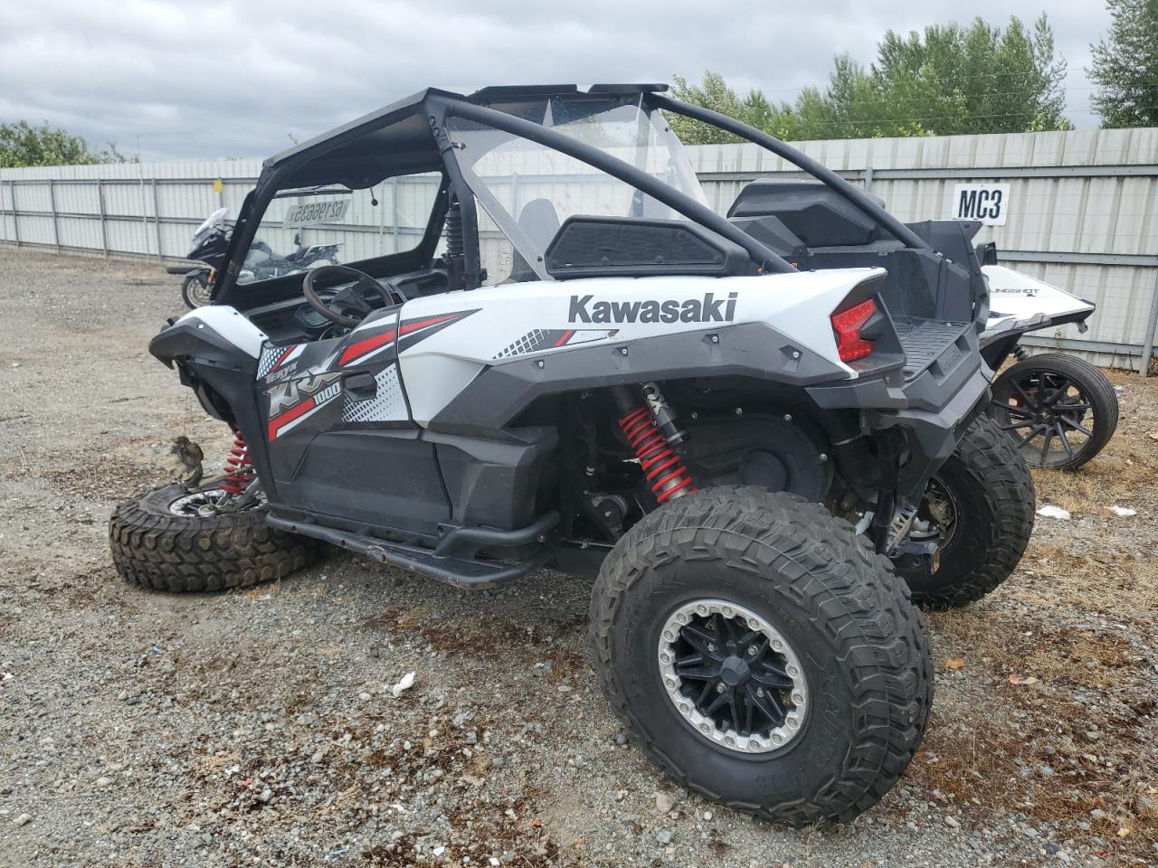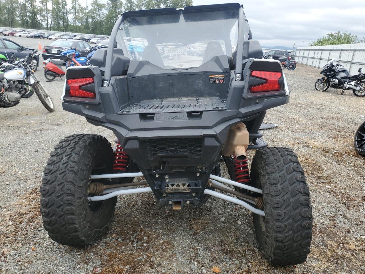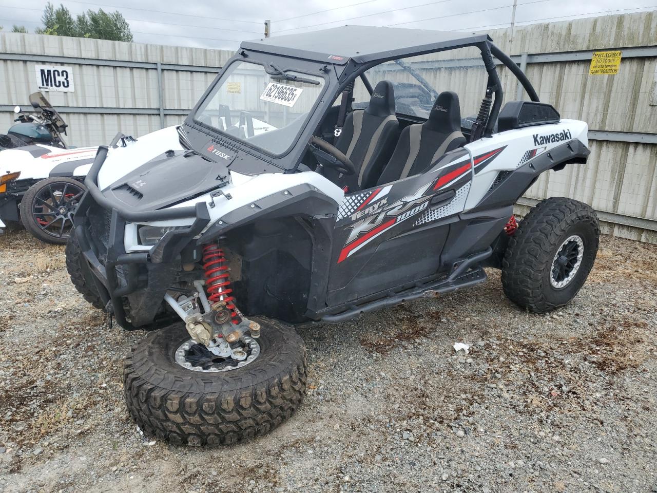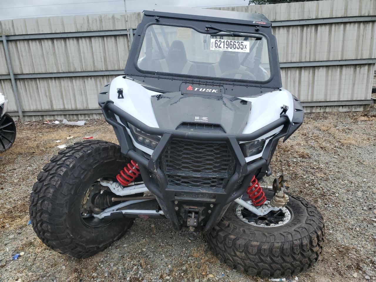 FairThe KAWASAKI KRF1000 2020, a two-tone UTV, shows significant damage primarily to the front end and side. The vehicle starts, indicated by "Vehicle Starts" but the overall state is impacted by the damage. The body panels are visibly affected with a possibility of frame damage. Lights and glasses appear to have sustained damage. The interior condition is rated as good. The vehicle's front end exhibits considerable damage. The wheels appear intact but affected by the overall damage. The vehicle is not drivable.