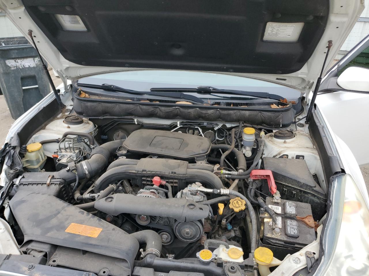 FairThis is a 2010 Subaru Legacy 2.5 with significant front-end damage. The car is white and has sustained substantial impact damage to its front, with secondary minor dents and scratches across the body. The vehicle has been confirmed as Run & Drive Verified.