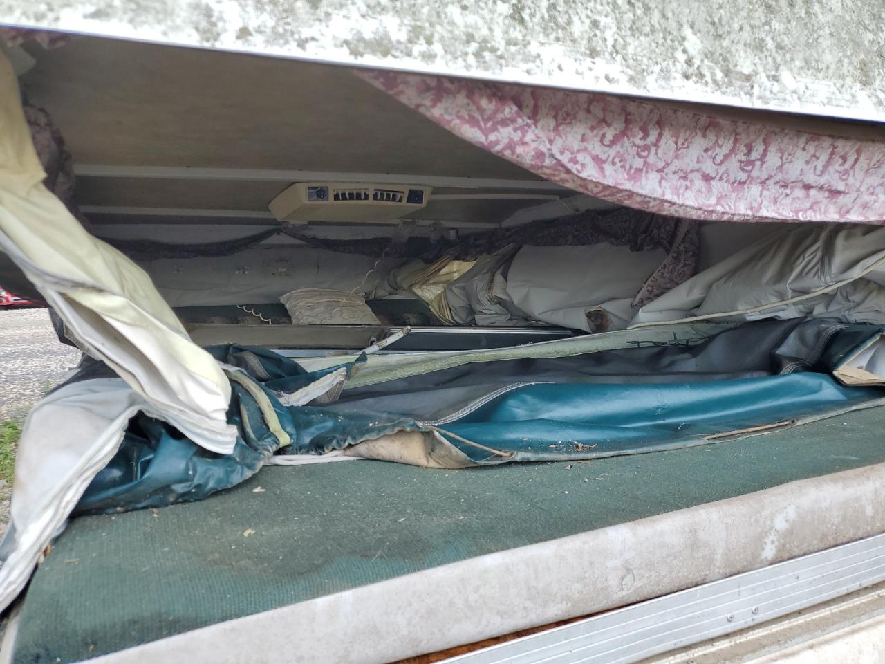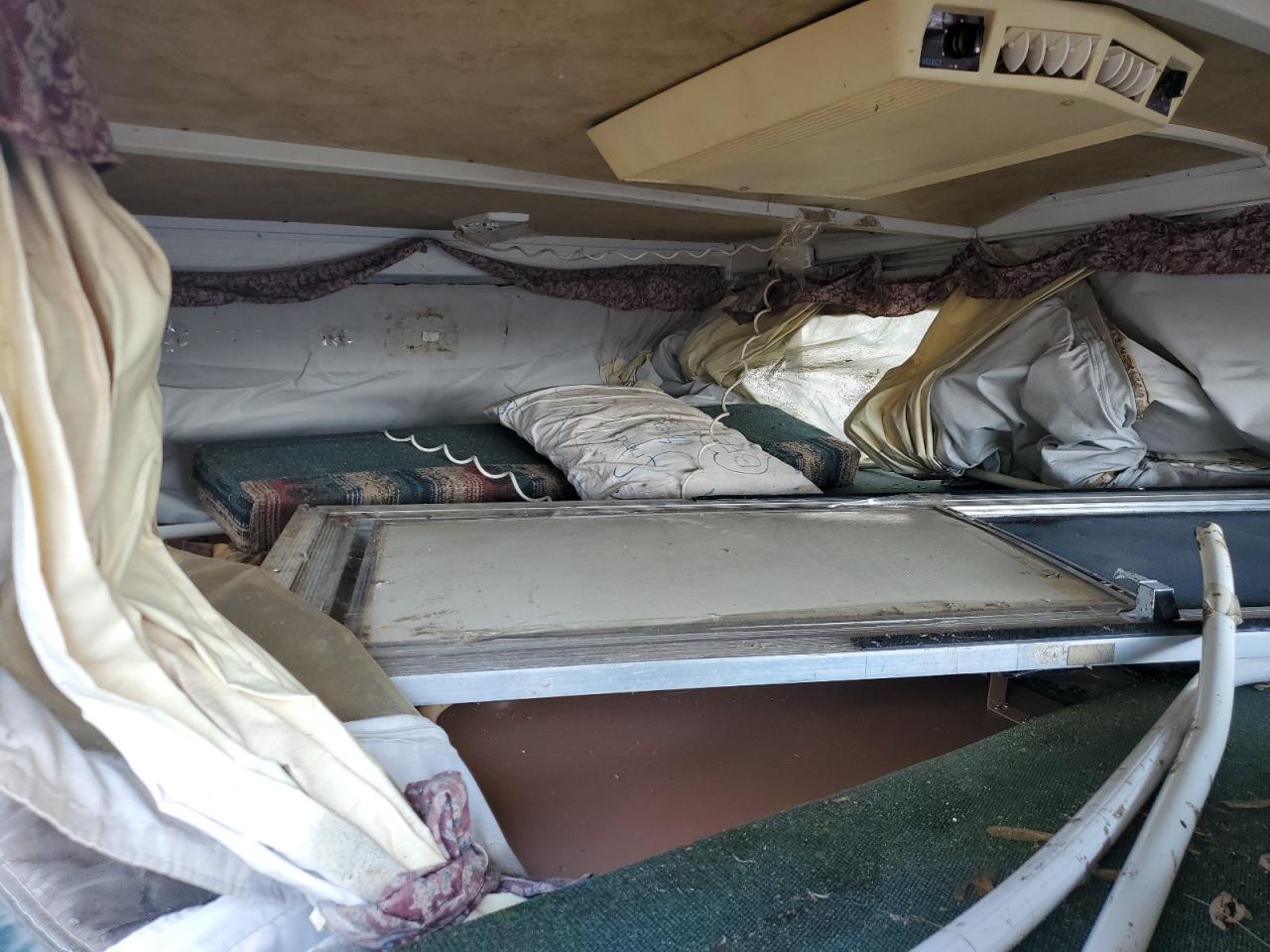 FairThe COLEMAN POP UP 2000 shows signs of significant water/flood damage and considerable wear. The exterior features extensive mildew and visible damage, indicating exposure to the elements. The interior appears to be water damaged with visible stains and deterioration. The wheels and lights seem to be in a fair condition. This vehicle is likely not drivable in its current state.