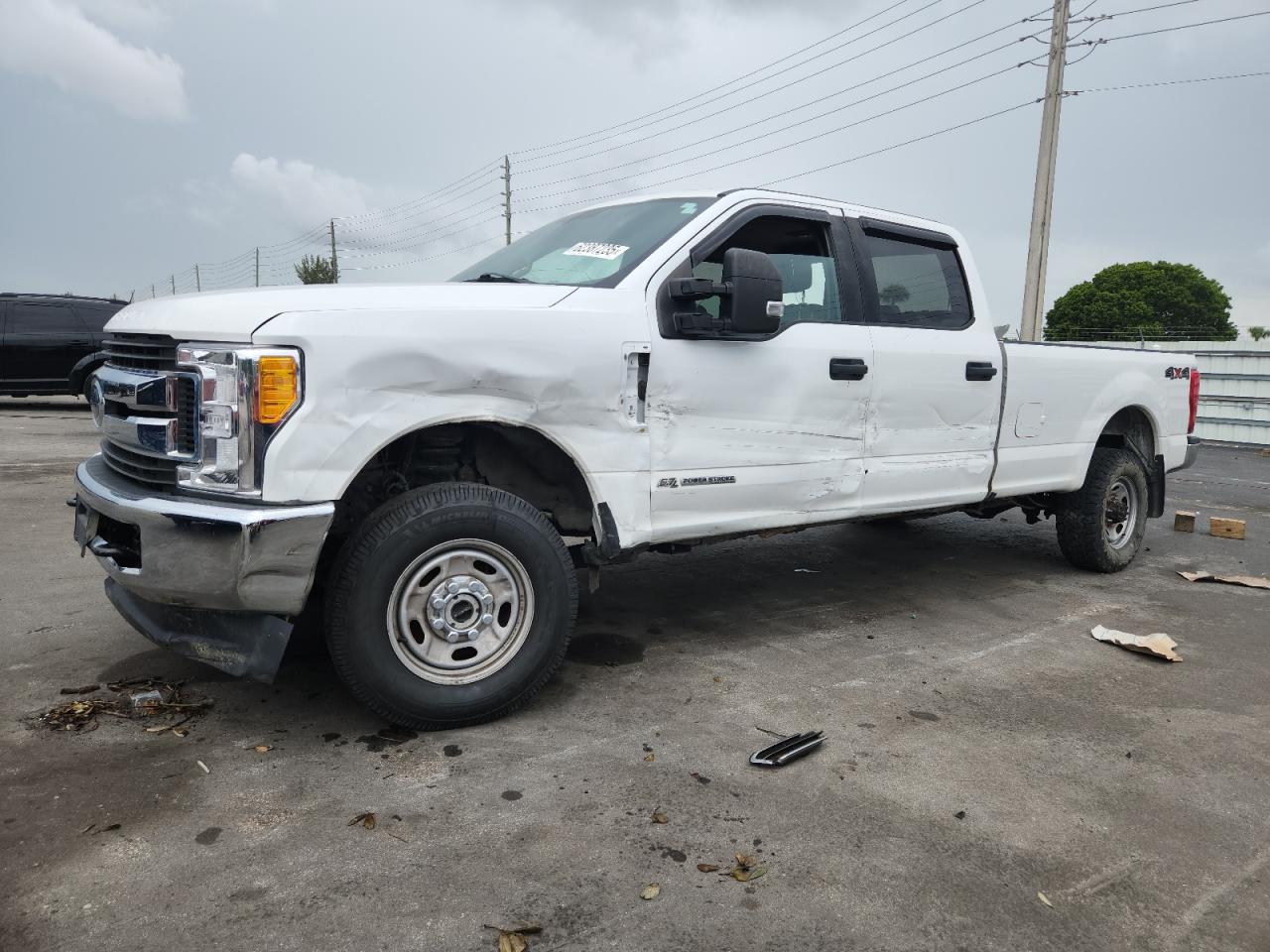 FairThis is a 2017 Ford F350 Super Duty truck. It is white and has sustained damage to the side and front end. The vehicle appears to be drivable, but requires repairs. The interior shows signs of wear and tear. The wheels and lights seem to be in acceptable condition, and the windows are intact. The vehicle's damage and overall condition suggests a need for significant repair. The vehicle's interior shows signs of wear and tear.