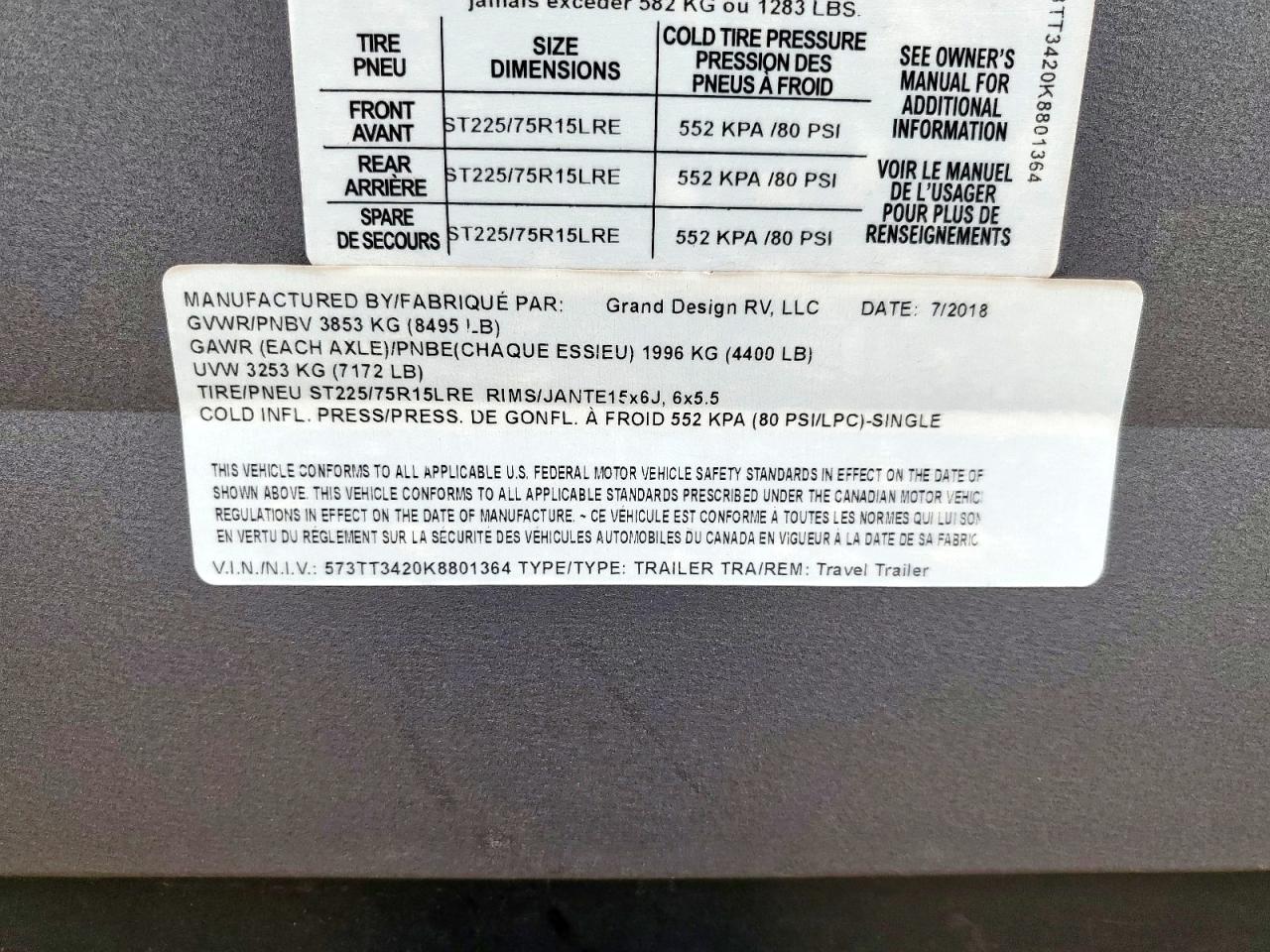 GoodThe 2019 Grand Design Transcend RV shows signs of use with cosmetic and body damage. The exterior has visible damage, the wheels appear to be in good condition. The interior shows minimal wear and tear.