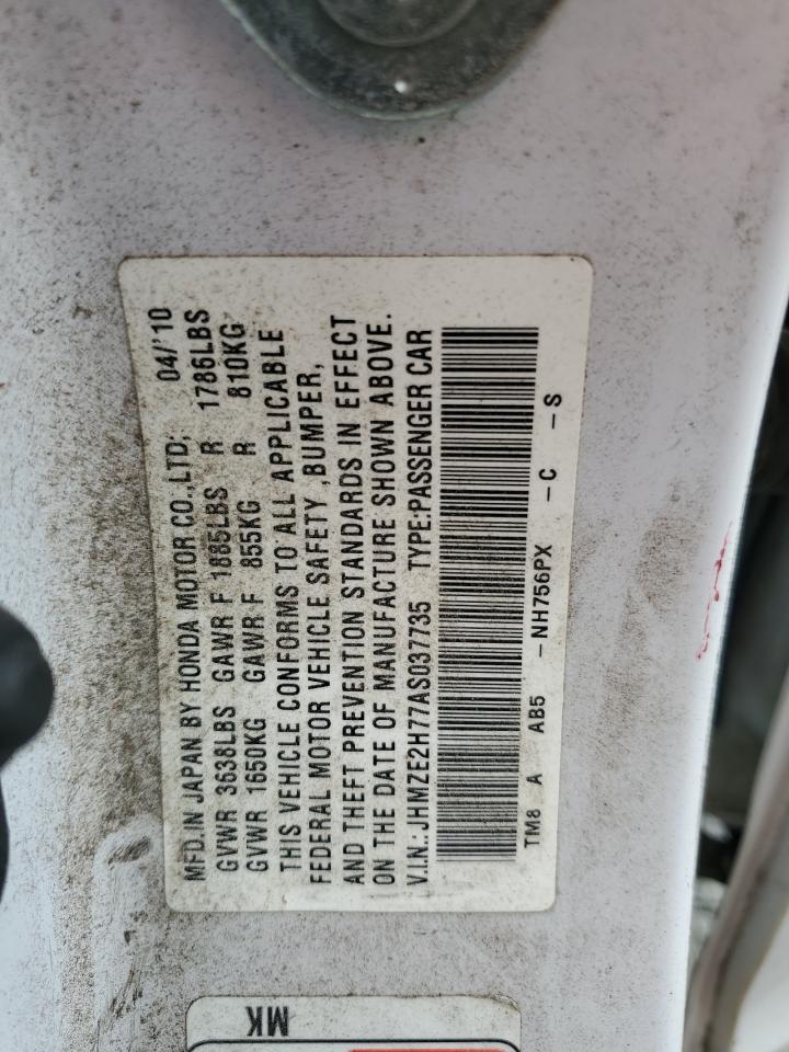 FairThis is a 2010 Honda Insight EX, white in color. The primary damage is to the front end, with no secondary damage. The car is listed as Run & Drive Verified. The front end has significant damage, including the bumper, hood, and possible structural damage. The car's exterior condition is fair, with visible damage. The interior shows signs of wear and tear, including deployed airbags and damage to the dashboard and seats. The wheels appear to be intact, and the lights and glasses are in salvage condition. The Honda Insight is a hybrid car known for its fuel efficiency. The damage includes front-end collision damage, deployed airbags, and interior wear. The car requires significant repair and is considered salvageable.
