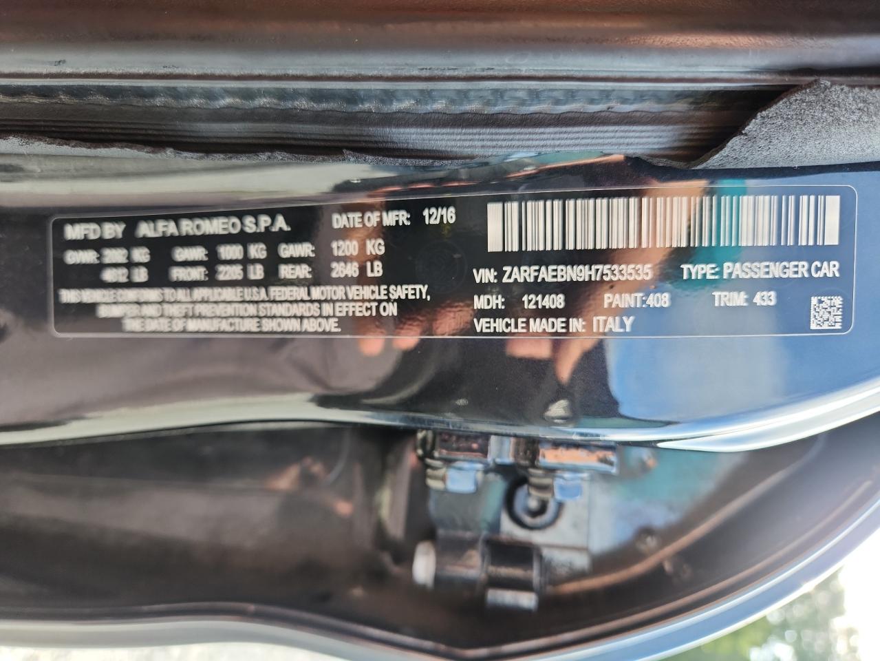 GoodThe ALFA ROMEO GIULIA 2017 is black. The primary damage is MECHANICAL, with no secondary damage. The overall condition is fair. It requires considerable repair, likely not drivable. The Interior condition shows some visible wear, the airbag service system light is on. Wheel are fine.