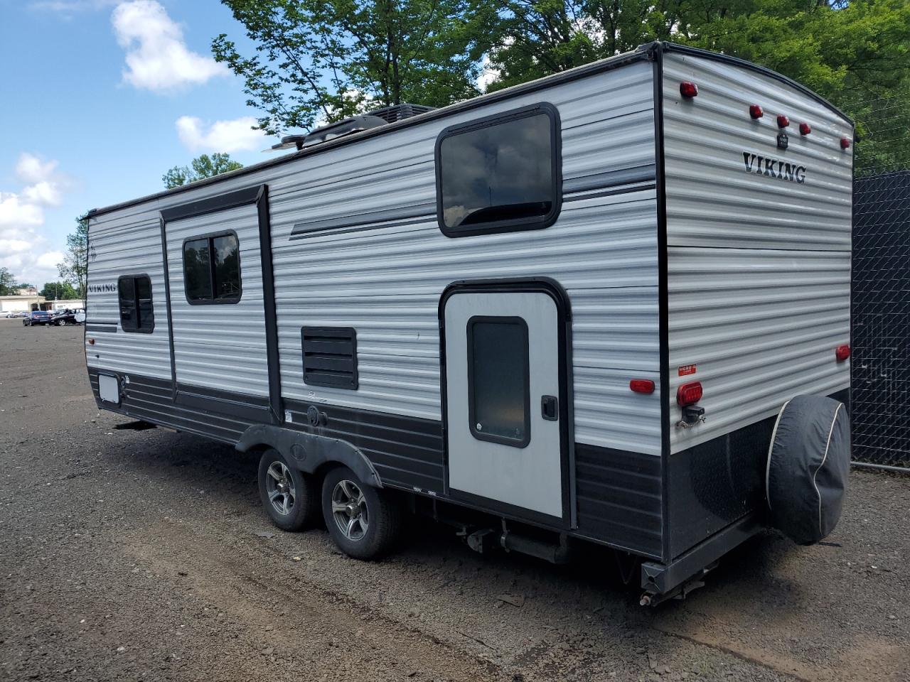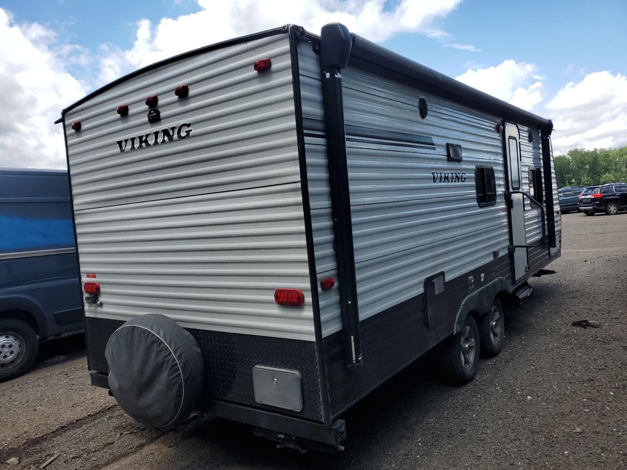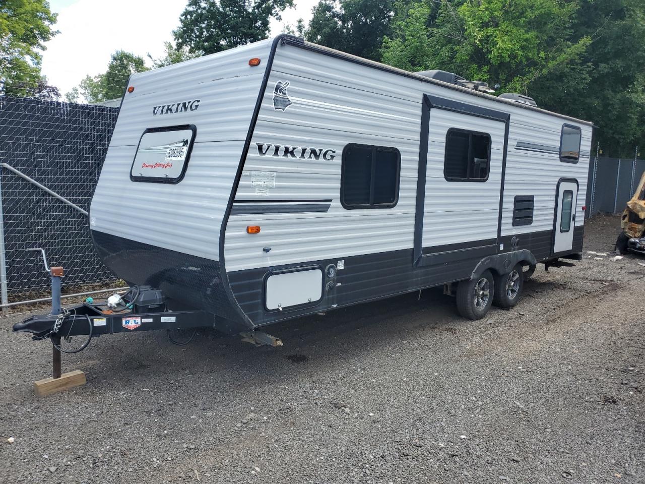 GoodThe 2019 Viking travel trailer exhibits normal wear and tear. The exterior is white, with no significant body damage. The wheels, lights, and glass appear to be in good condition. The interior shows minimal signs of use.