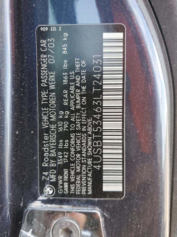 GoodThe 2003 BMW Z4 3.0 is a blue convertible with normal wear and no secondary damage. It is a Run & Drive Verified vehicle. The vehicle has some cosmetic damages and interior issues, and is in overall good condition.