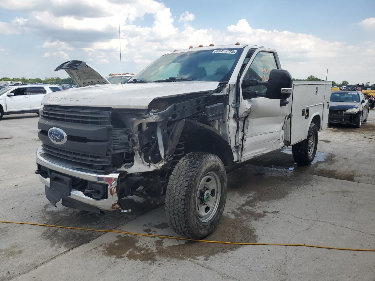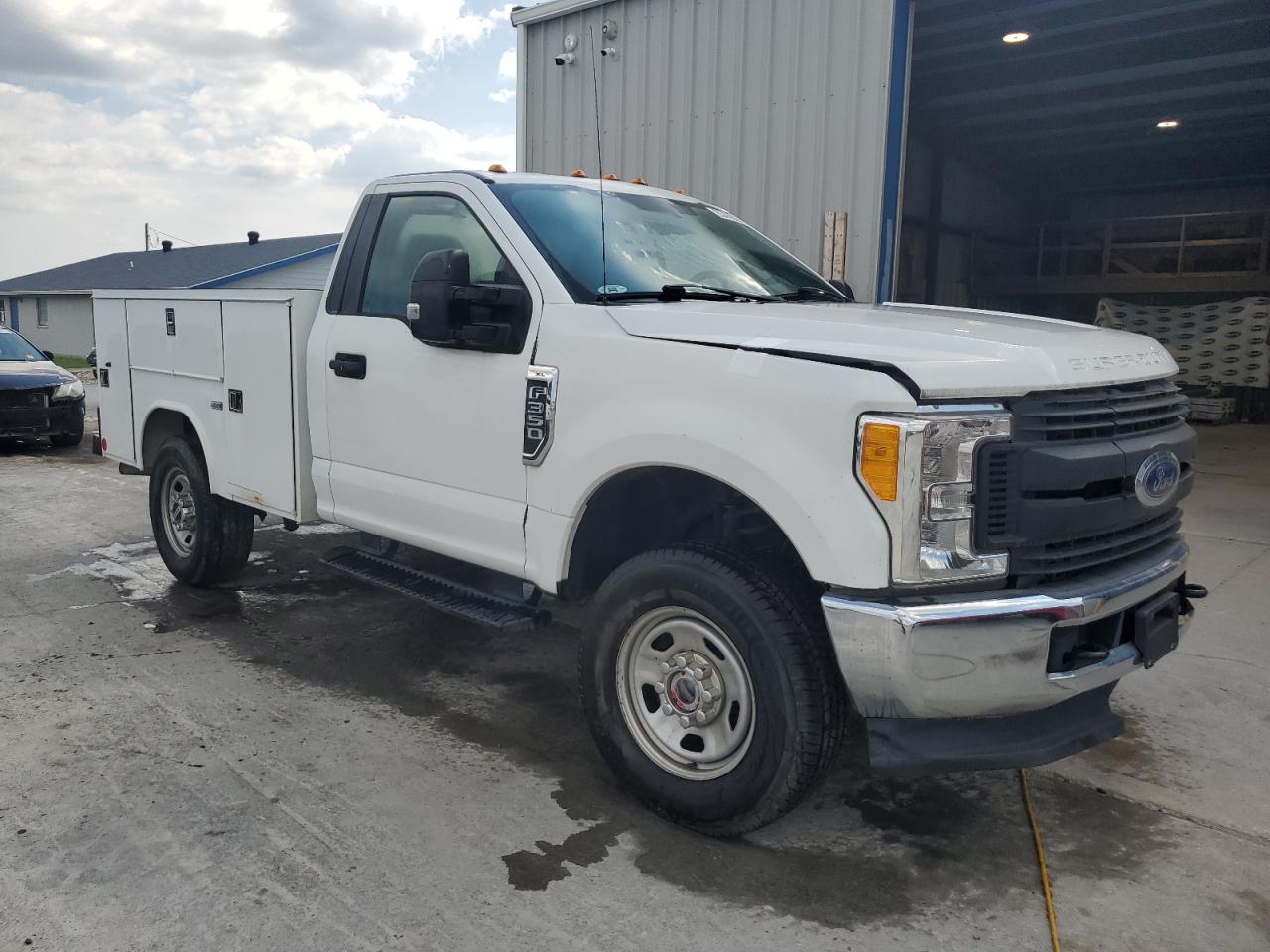 FairThis 2017 Ford F350 Super Duty, a white work truck, shows signs of both front-end and side impact damage. Despite the front-end damage, the vehicle is listed as 'Run & Drive Verified'. The interior appears to be in decent condition, showing wear but no major issues. The wheels appear to be intact. The vehicle damage category is body damage. The damage includes visible damage to the front end and side body panels of the vehicle. The car seems drivable after repair, but the exterior condition reflects moderate damage overall. This could be a good project car for someone looking to restore a heavy-duty truck.