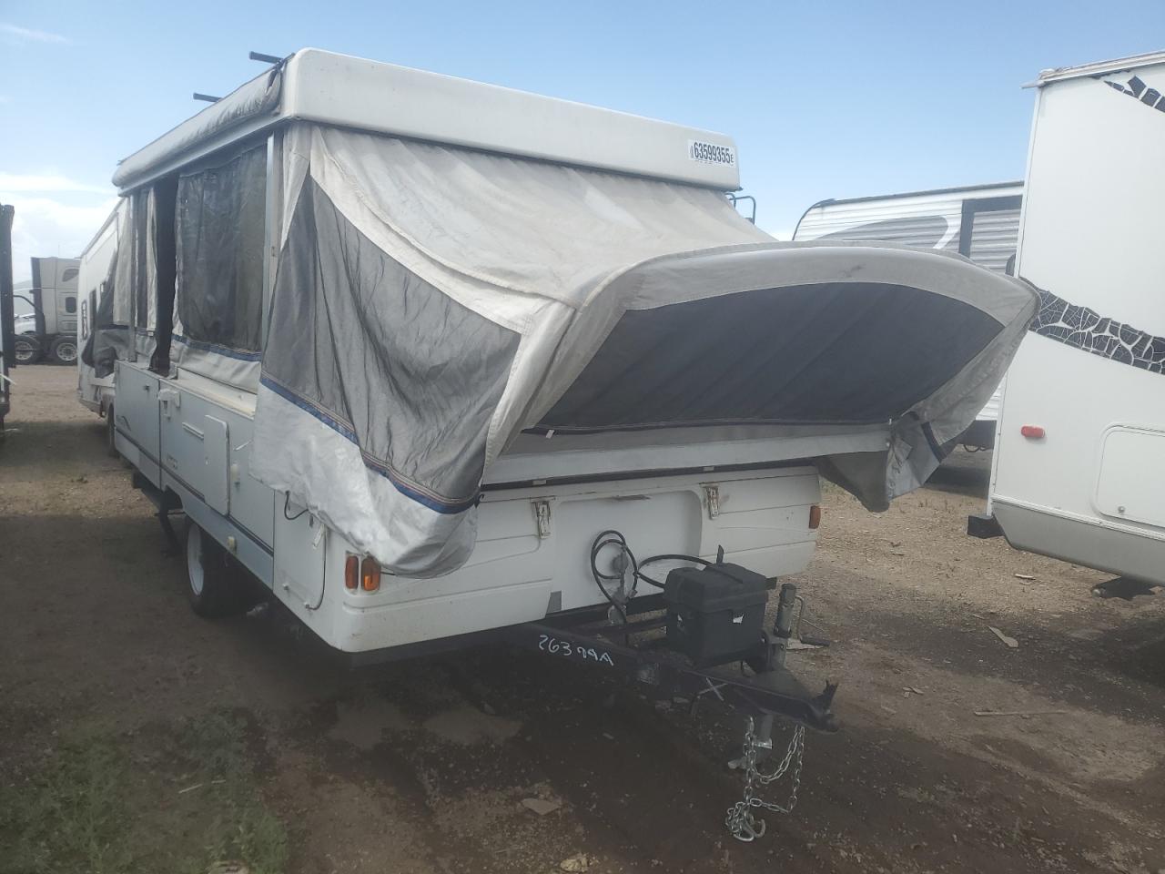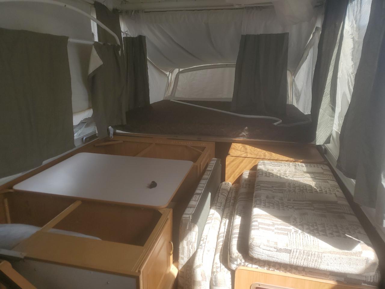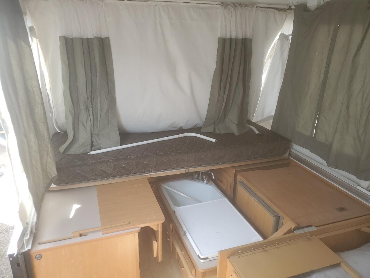 FairThis is a 2003 Coleman pop-up camper trailer, likely white in color. The primary damage is concentrated on the REAR END of the trailer. The exterior shows moderate visible damage and requires repair, but appears drivable, it has some minor interior damages as well, but its wheels and lights are fine. The interior shows moderate damage. **Damage and Overall State Summary:** * **Vehicle Damage Category:** Body * **Overall Condition:** Fair **Visible Damages:** * REAR END damage