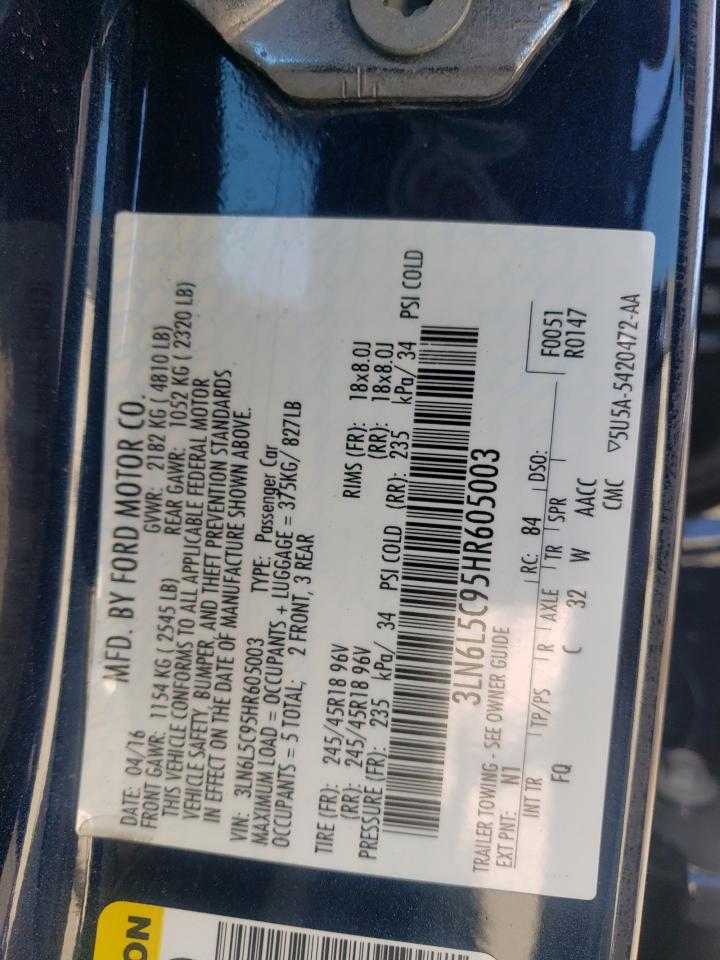 FairThe 2017 Lincoln MKZ Select exhibits significant damage. The primary damage is to the side, with secondary undercarriage damage. The car's blue exterior shows substantial body damage, particularly to the rear. Despite the damage, the vehicle starts. The wheels appear intact, but body panels need replacement. The interior shows minor wear, airbags are not deployed. Overall, the car is in fair condition, requiring repair.