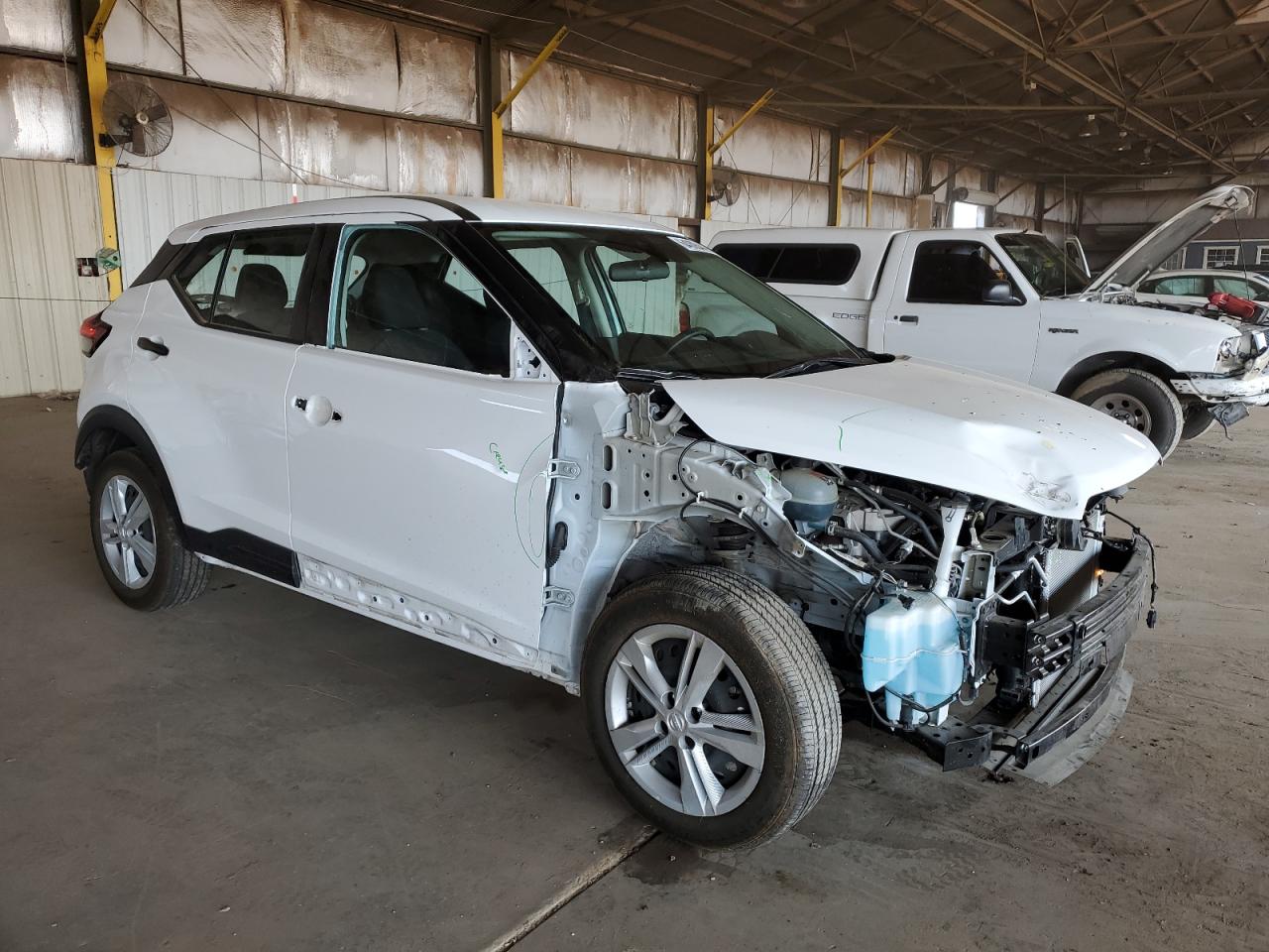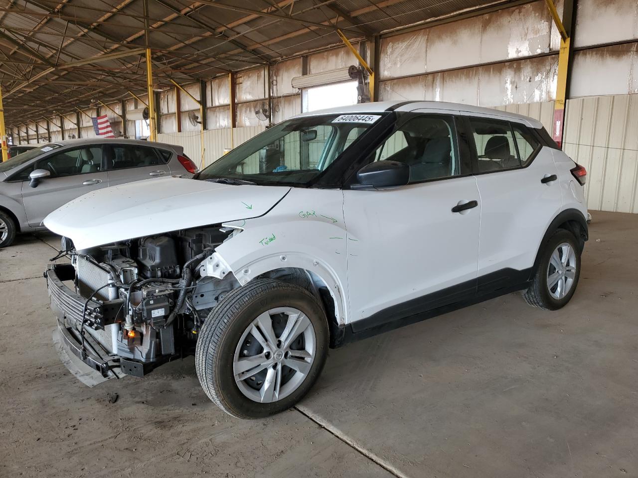FairThe 2021 Nissan Kicks S, white in color, displays significant damage. The front end has sustained major damage, while the rear end also shows considerable impact. The car's 'Run & Drive Verified' status indicates it is drivable, despite the body damage. The vehicle has visible damage to the front and rear, the body panels are affected, and the overall condition is fair. The interior appears to be in good condition with some wear and tear.