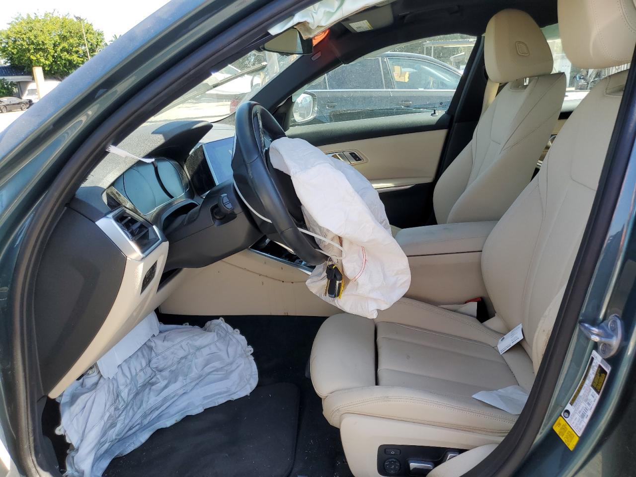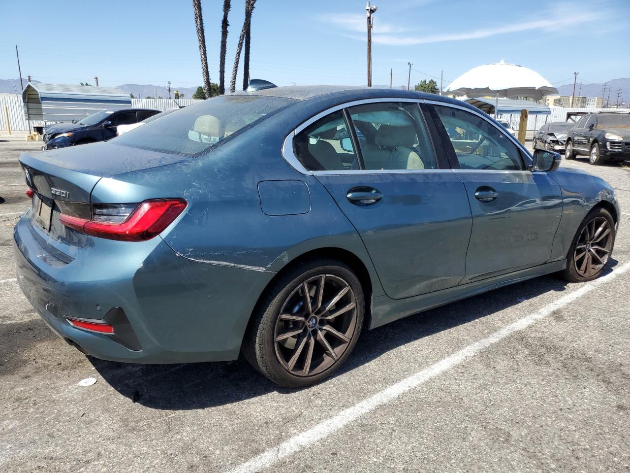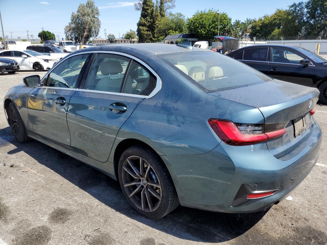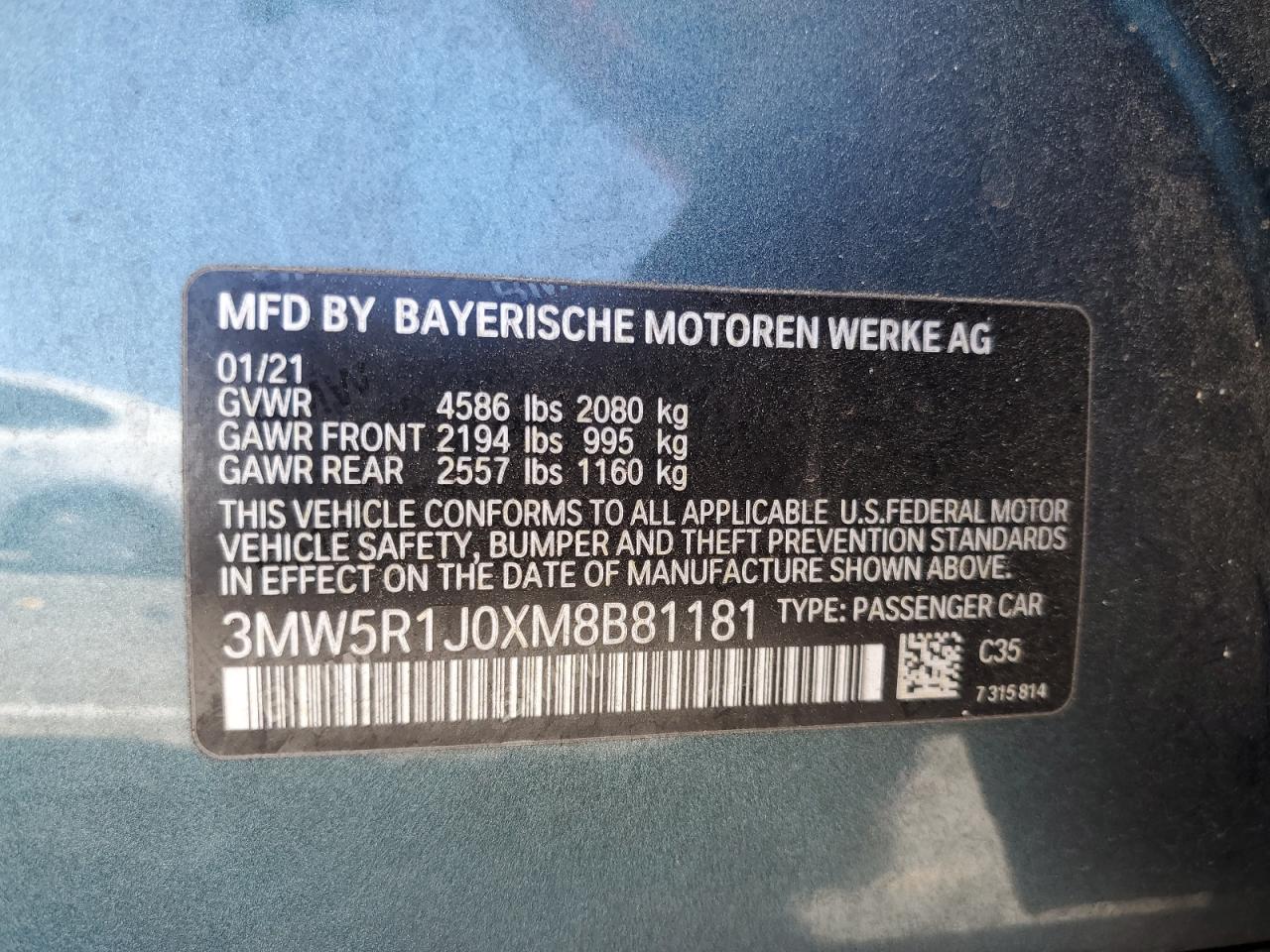FairThis 2021 BMW 330i, in a striking teal color, presents with significant front-end damage, indicating a collision. The airbags have deployed, and the interior shows considerable damage. The drivetrain malfunction warning suggests potential mechanical issues. Wheels appear to be intact, but the overall condition is significantly impacted.