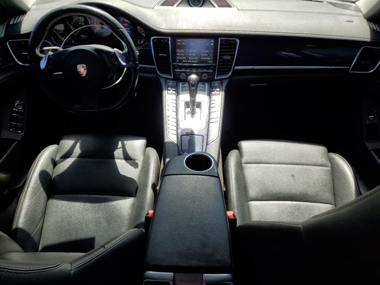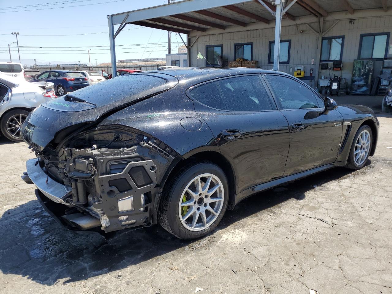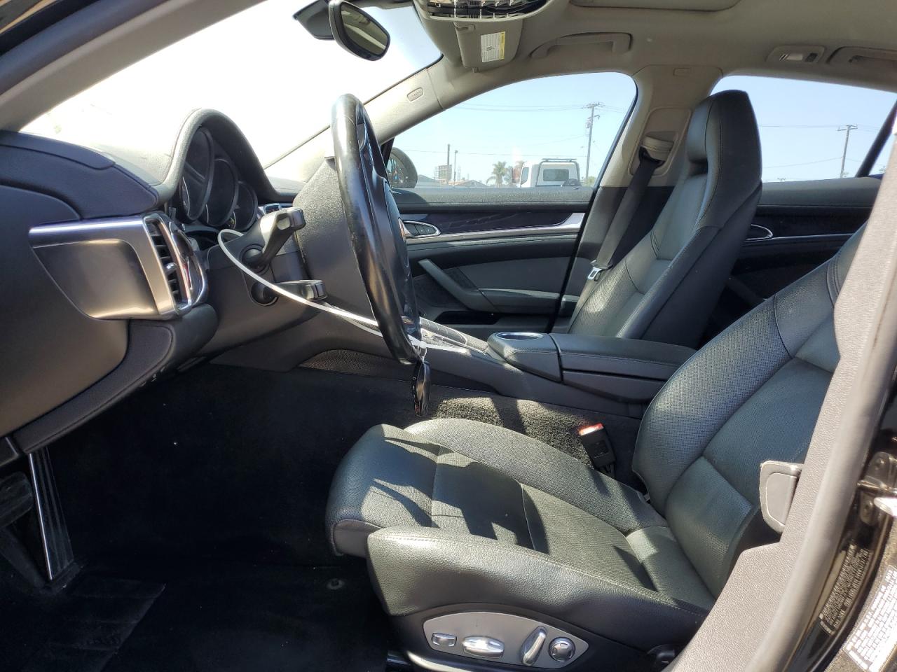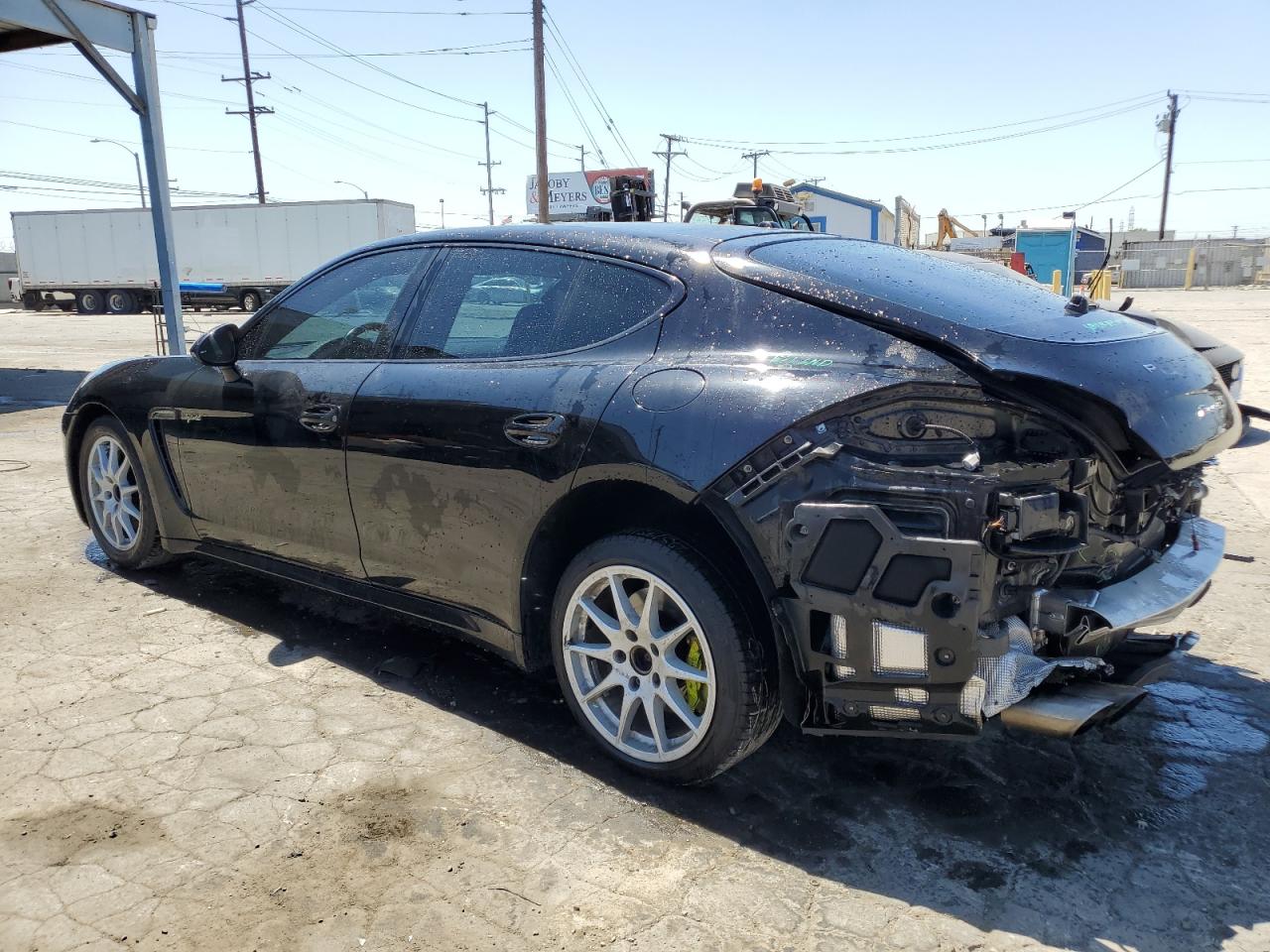 Fair2014 PORSCHE PANAMERA S with REAR END damage. The car is black. Damage to the rear of the car is significant. The interior shows minimal wear and tear and appears to be in good condition. The wheels and lights appear to be intact. The airbags status is unknown. The vehicle's overall state is fair, indicating a need for repair. The car's damage mainly focuses on the body panels. The car is drivable, the vehicle damage category is Body.